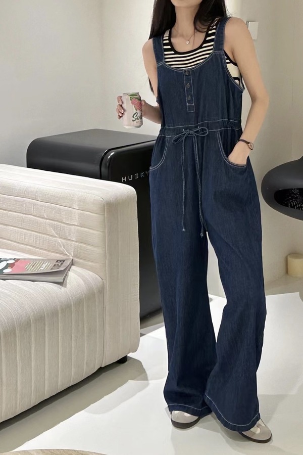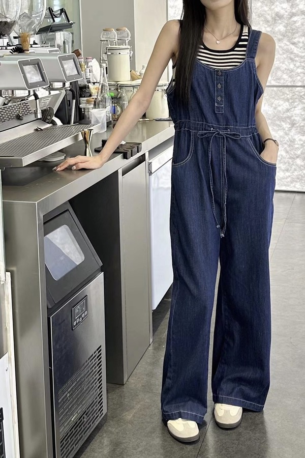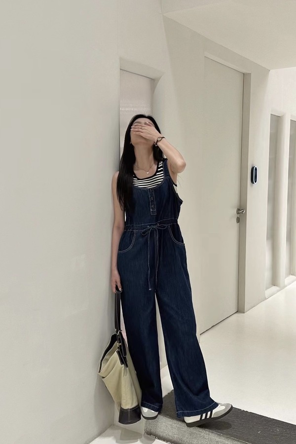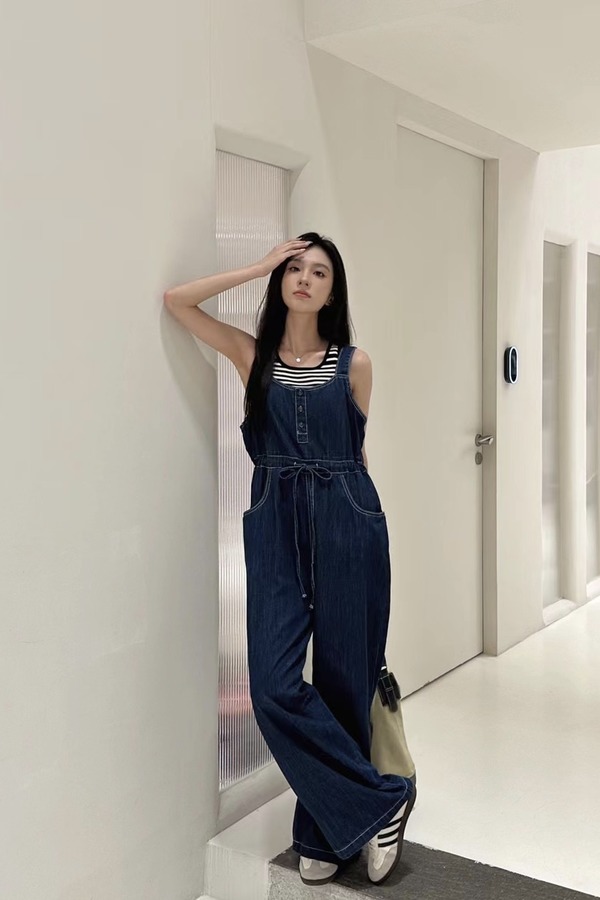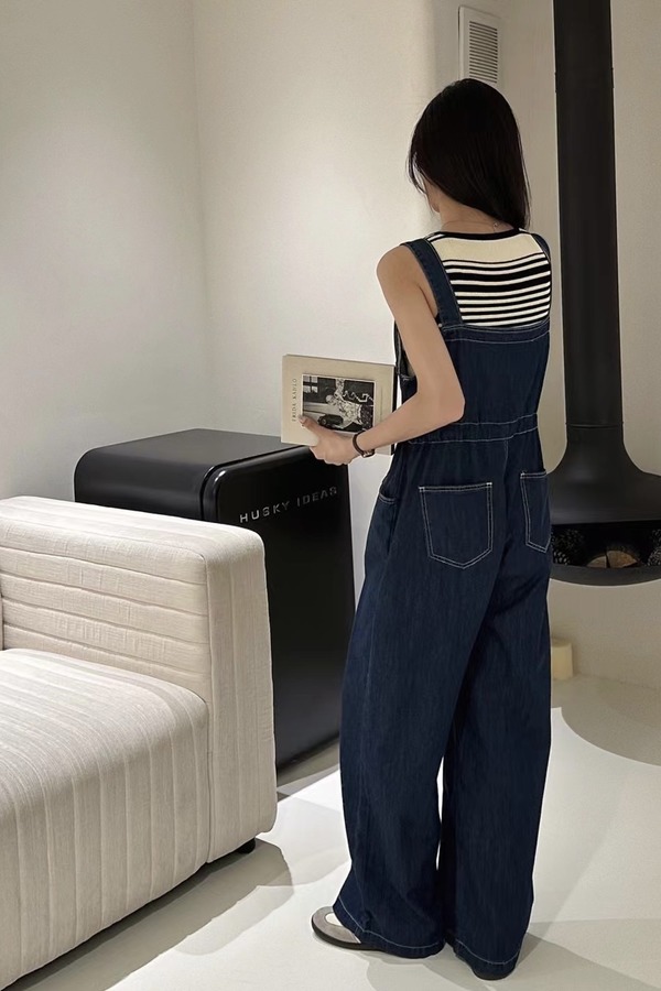 LNNNS 深蓝色收腰吊带背带裤 18367