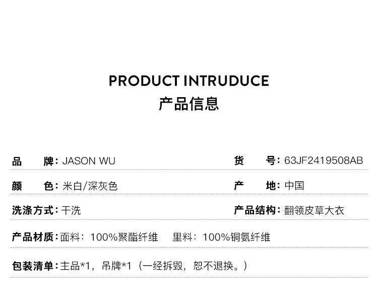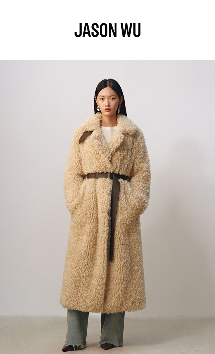 【JASON WU】(多色)秋冬新款环保皮草直身长大衣 环保皮草直身长大衣