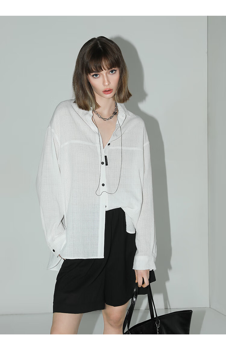 COCOBELLA松弛感穿搭轻薄遮阳衬衫女宽松休闲气质衬衣SR3025C