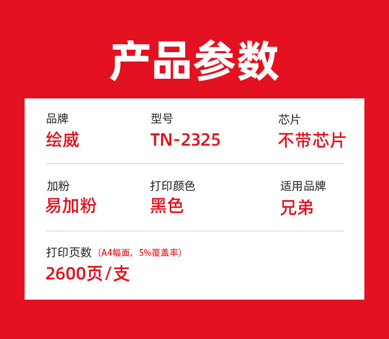 绘威商专 硒鼓架DR-2350 易加粉粉盒TN-2325 适用兄弟/Brother HL-2260D DCP-7080D 7180DN MFC-7380 7480D 7880DN 1支