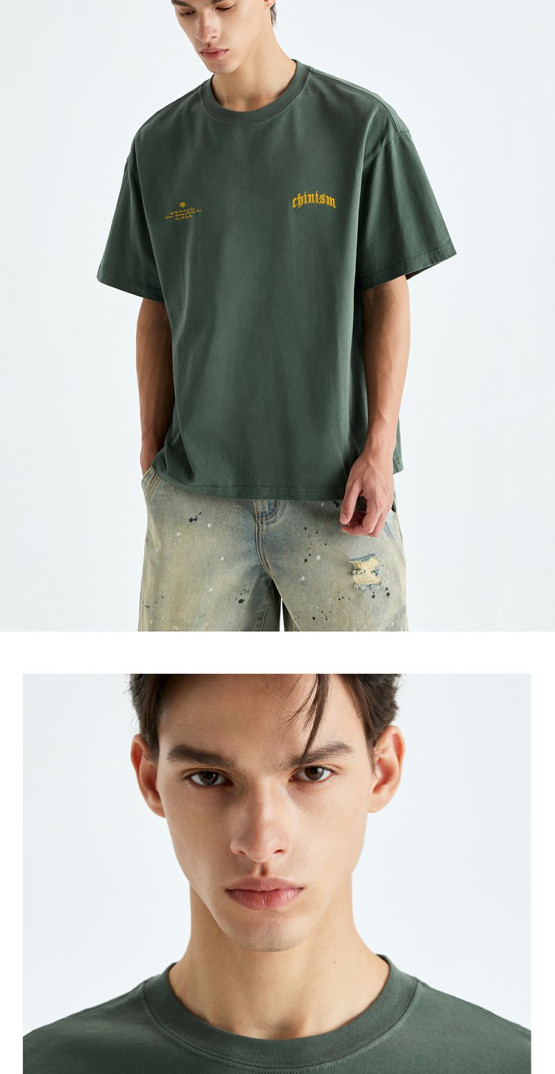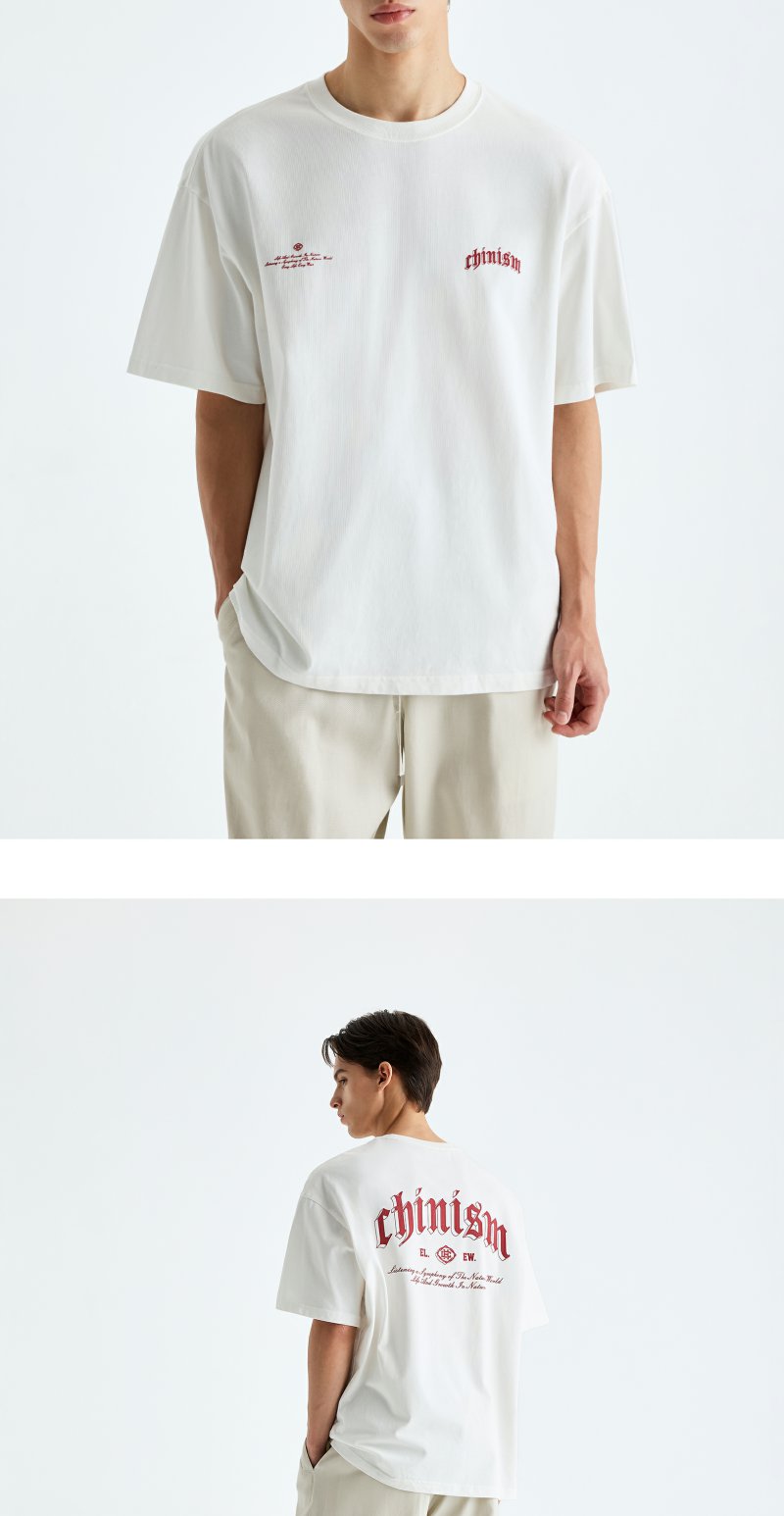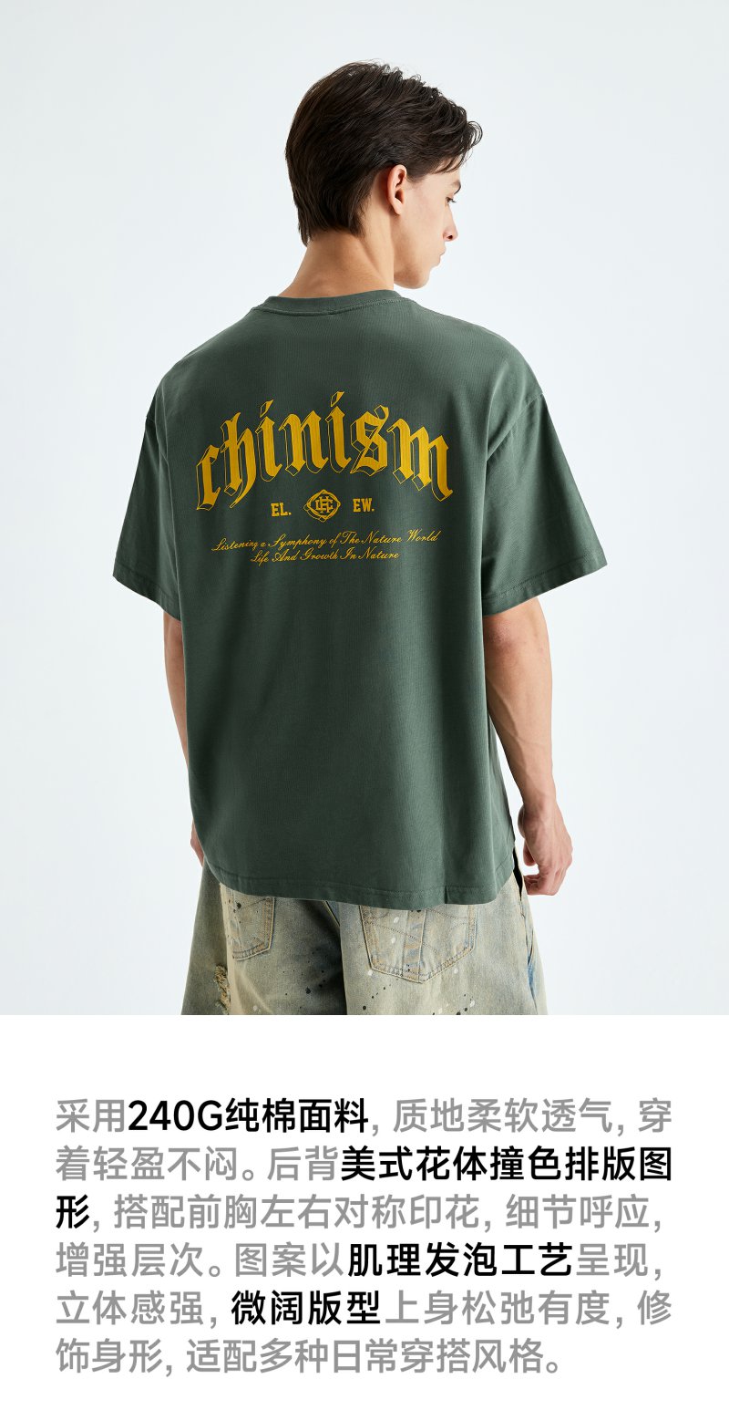 CHINISM赤尘 肌理感发泡印花短袖T恤男夏季纯棉宽松休闲男士上衣