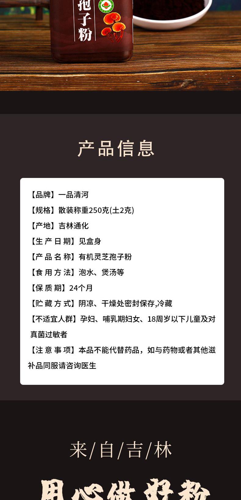 【自营】一品清河 长白山有机灵芝孢子粉250g灵芝片 YPQHYJLZBZF250G