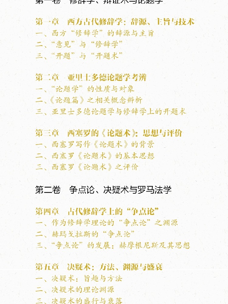 第一卷 修辞学、辩证术与论题学第一章 西方古代修辞学:辞源、主旨与技术 65一、西方“修辞学”的辞源与主旨 65二、“意见”与“修辞学” 83三、“开题”与“开题术” 111第二章 亚里士多德论题学考辨 121一、“论题学”的性质与对象 121二、《论题篇》之相关概念辨析 135三、亚里士多德论题学与修辞学上的开题术 168第三章 西塞罗的《论题术》:思想与评价 210一、西塞罗写作《论题术》的背景 210
