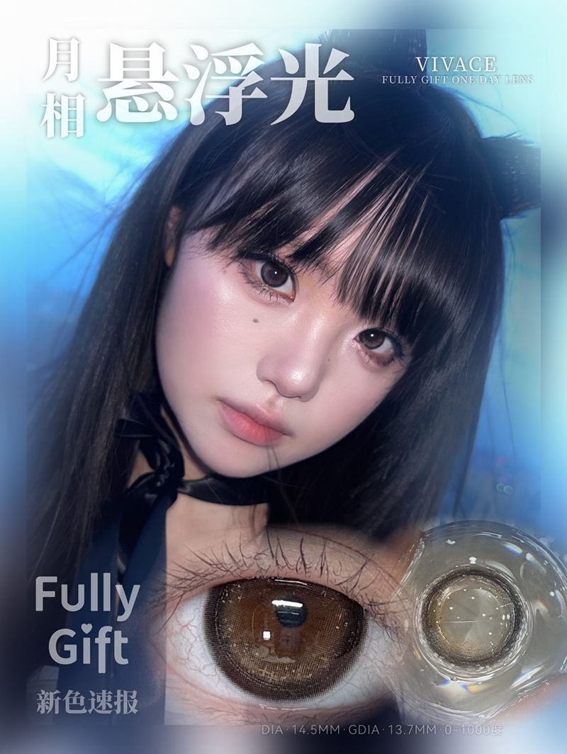 FULLY GIFT 月相悬浮光 日抛 十片 14.5mm 参考着色 13.7mm 基弧 8.7 含水 43% 新锐国货