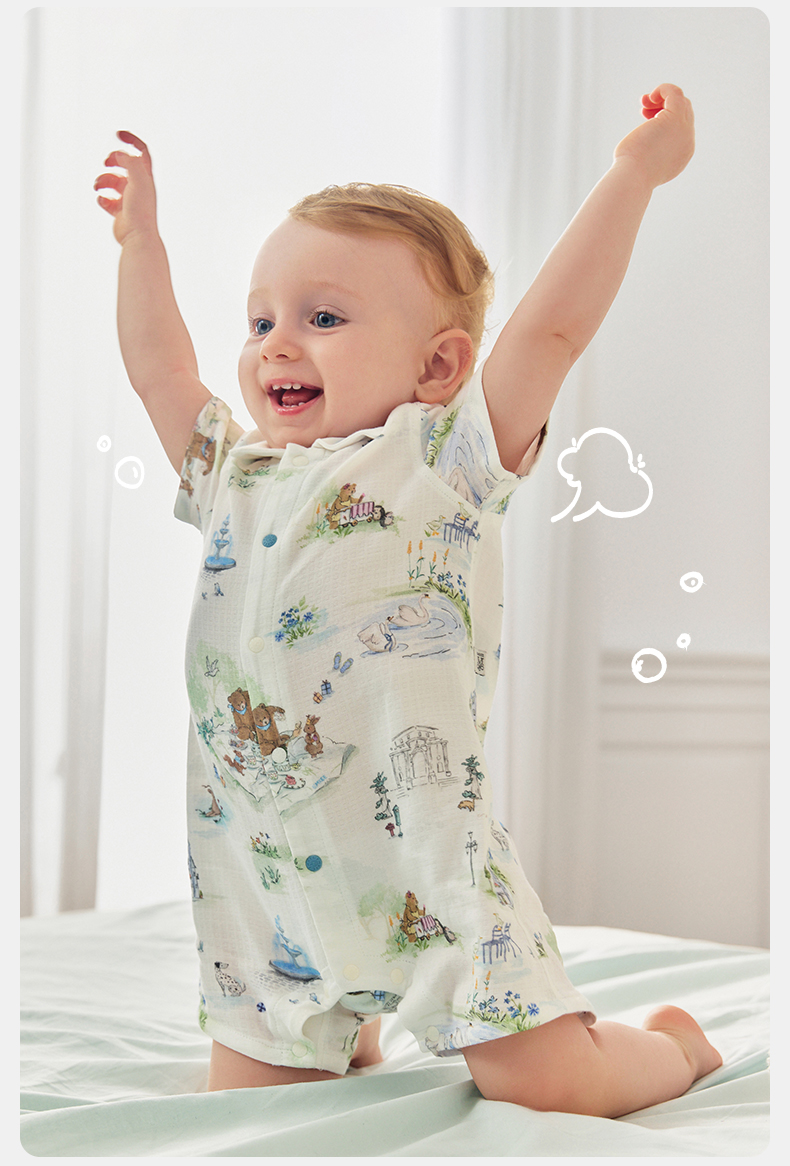 【宝宝服饰】嫚熙婴儿连体衣弹力丝麻棉新生儿宝宝连身衣爬服哈衣