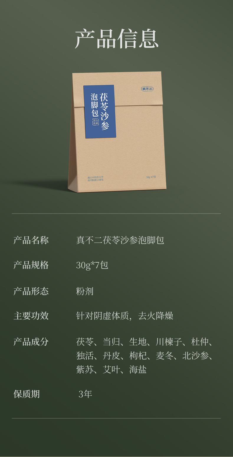 【真不二】阴虚体质-茯苓沙参泡脚包2.0版(30g*7小包)