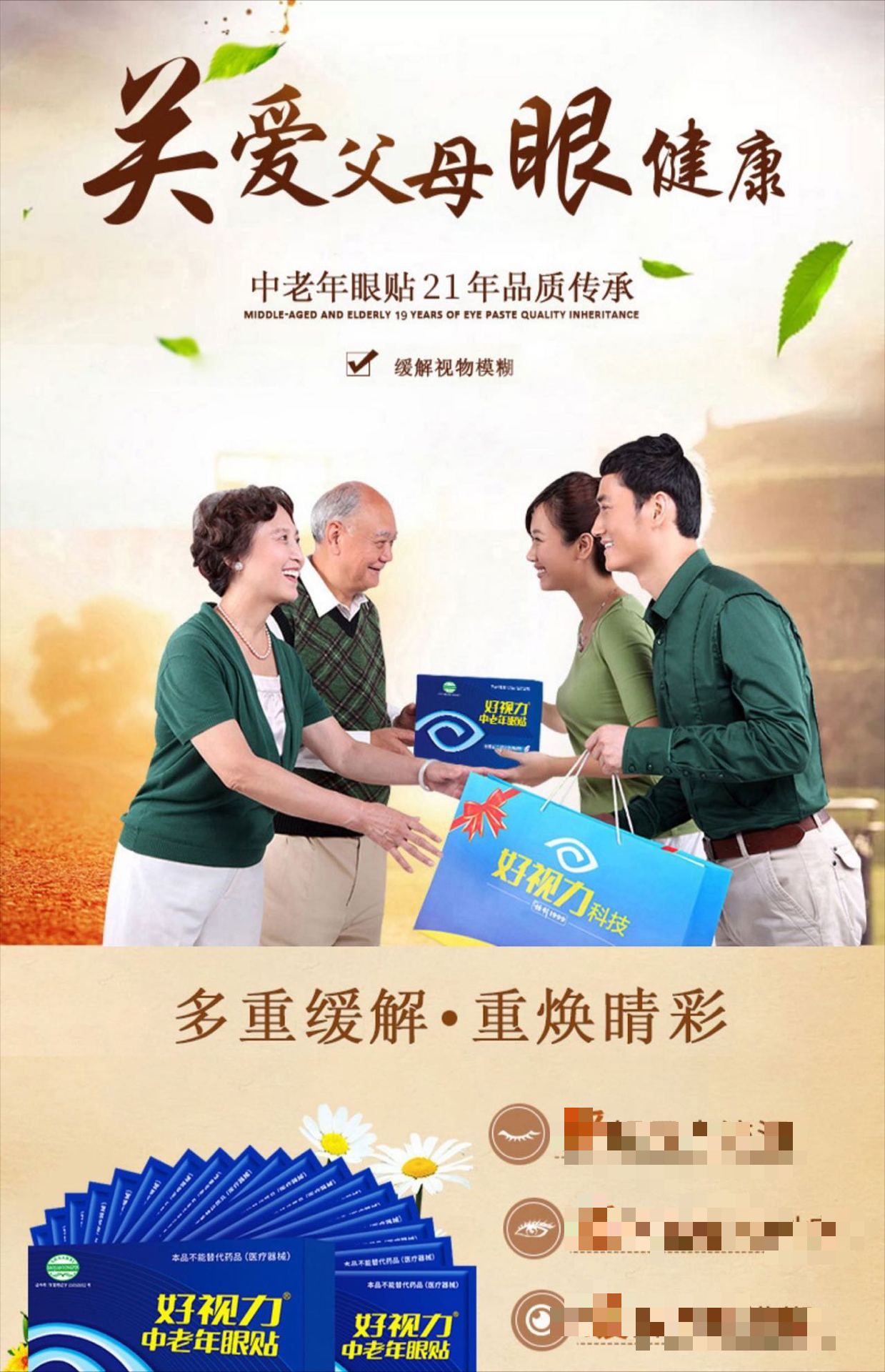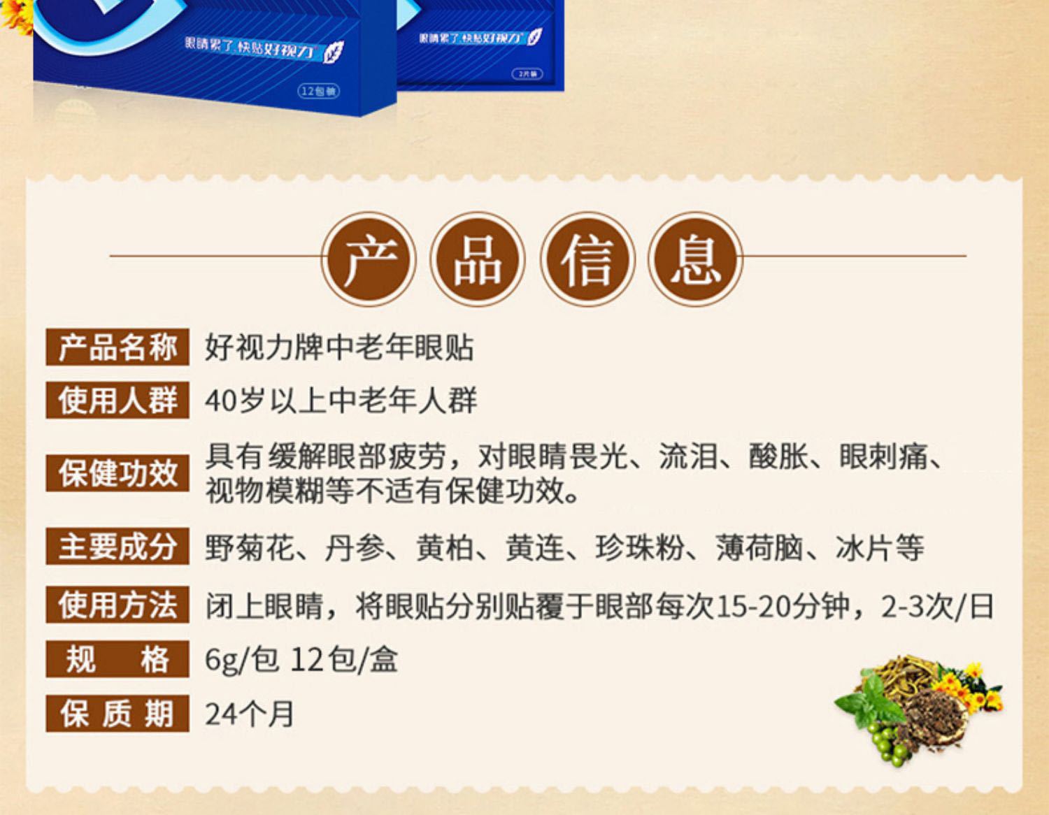 好视力中老年眼贴缓解眼疲劳眼畏光流泪草本冷敷贴保健贴护眼