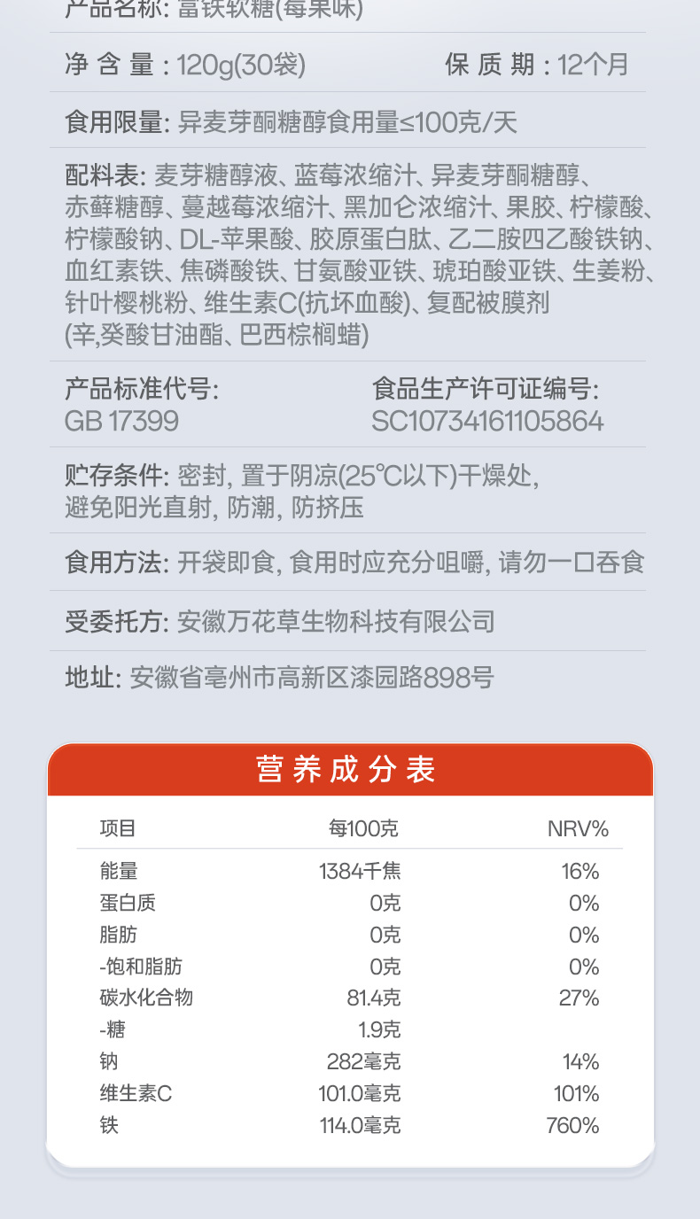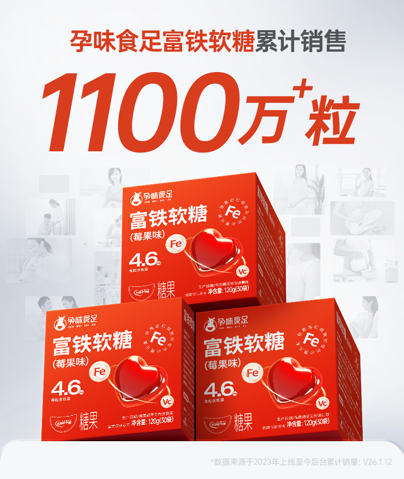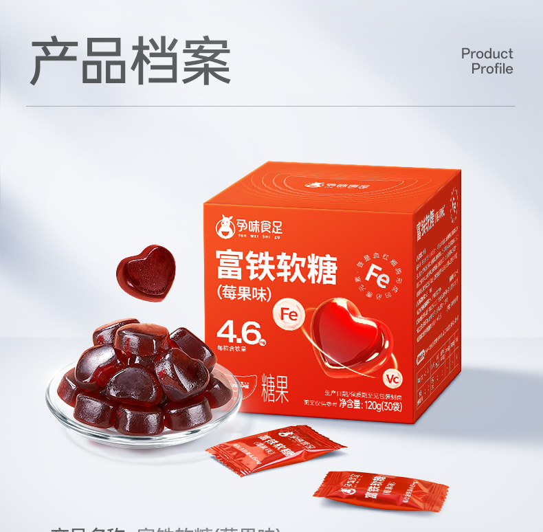 孕味食足富铁软糖孕妇怀孕期吃的含铁元素女性健康营养零食品(内含30粒)
