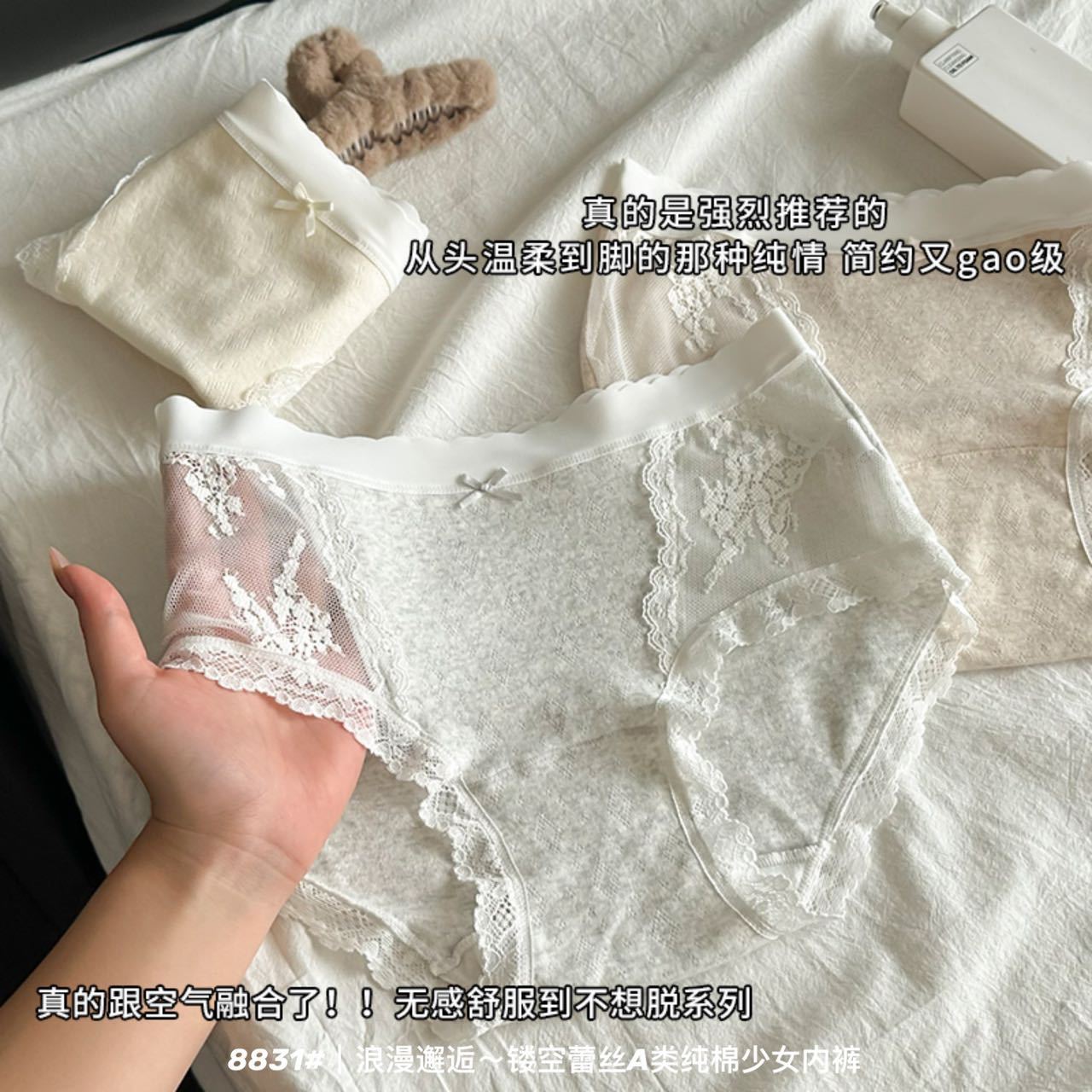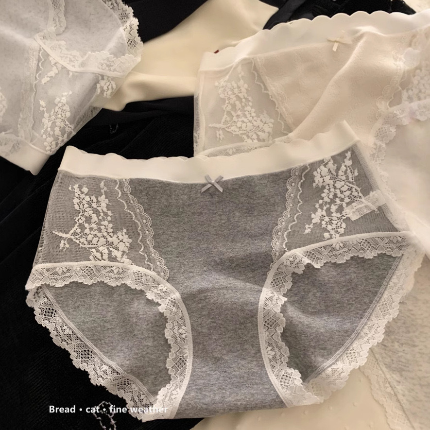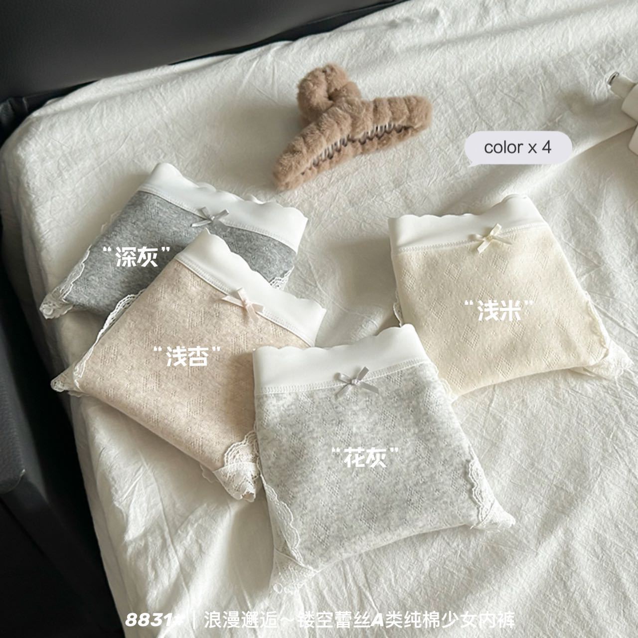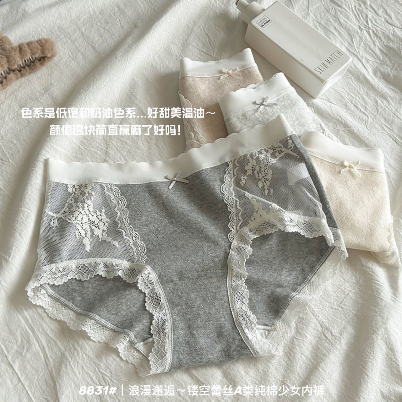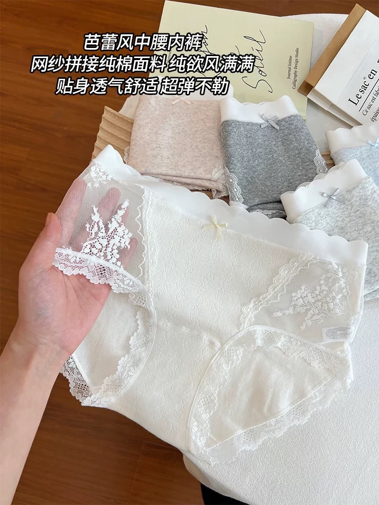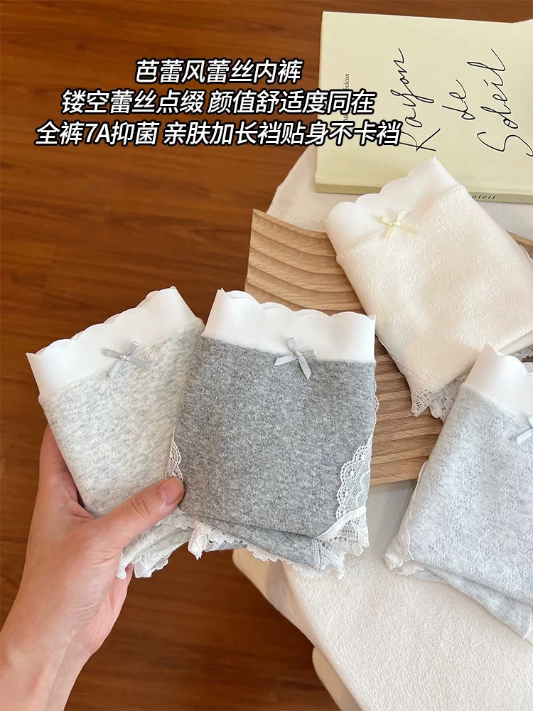 【品名】春日芭蕾 蕾丝法式纯棉内裤4条