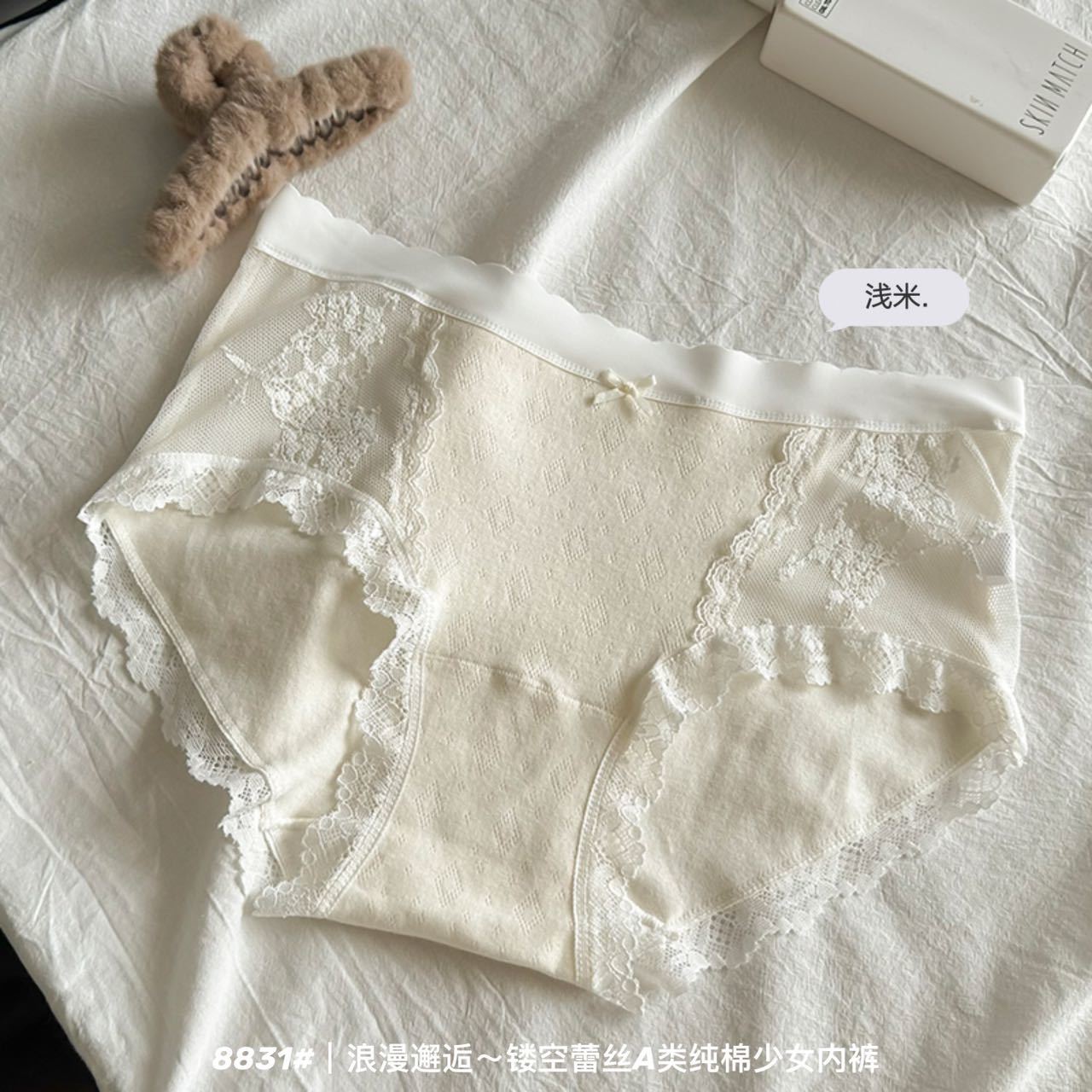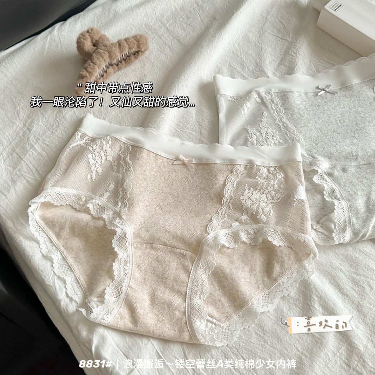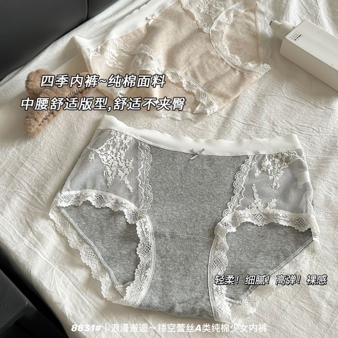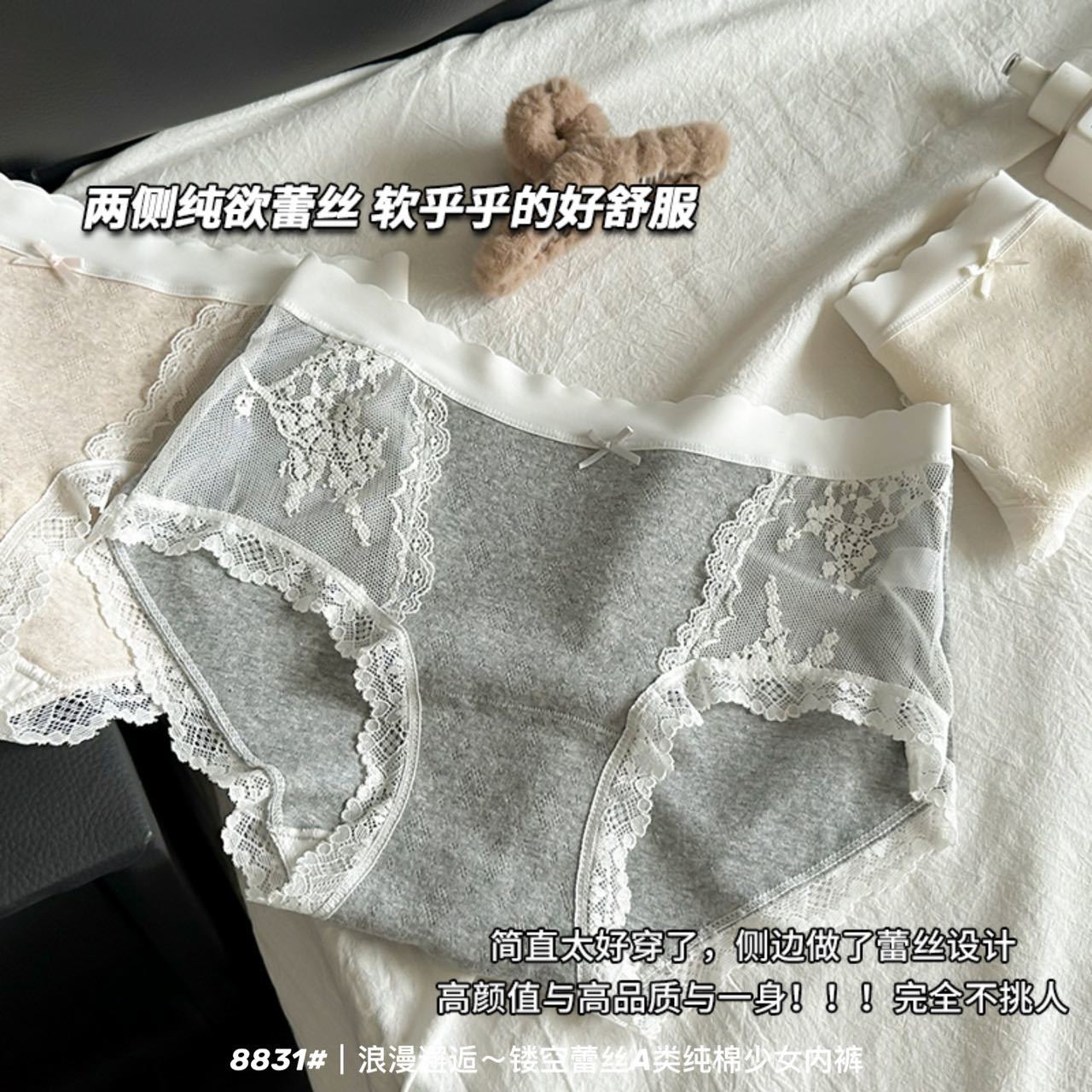 【品名】春日芭蕾 蕾丝法式纯棉内裤4条