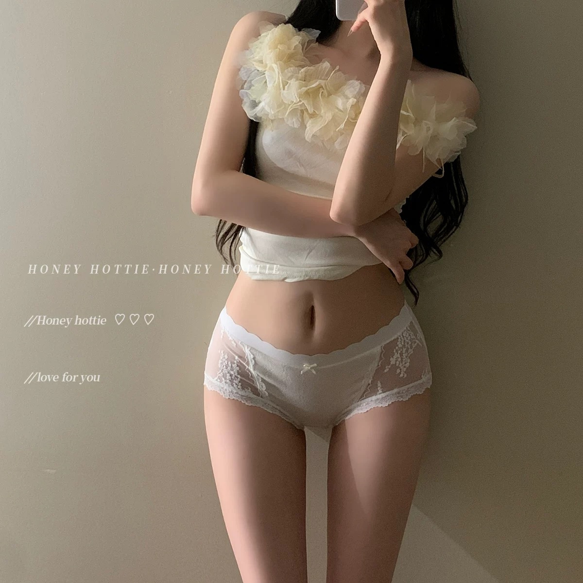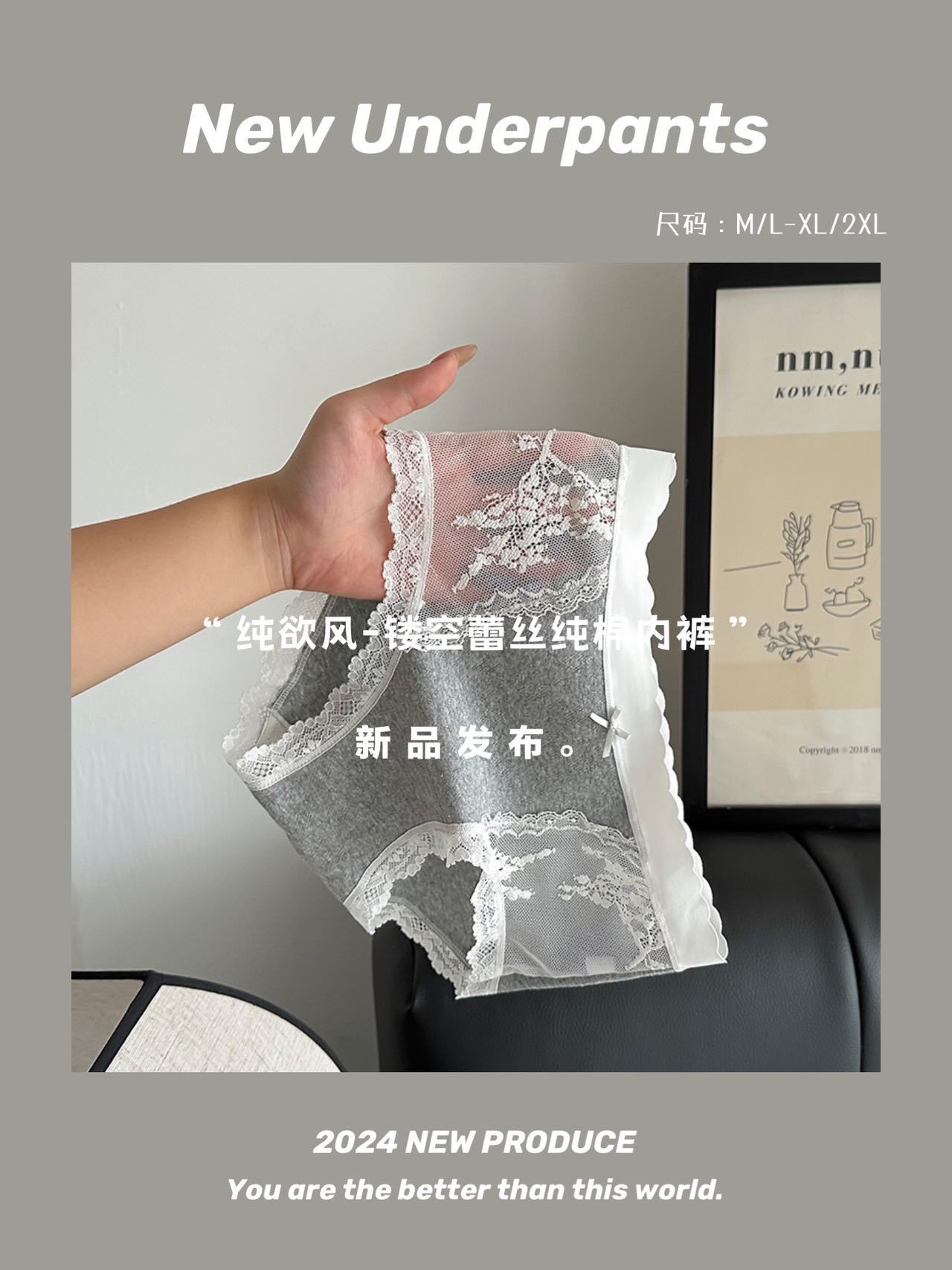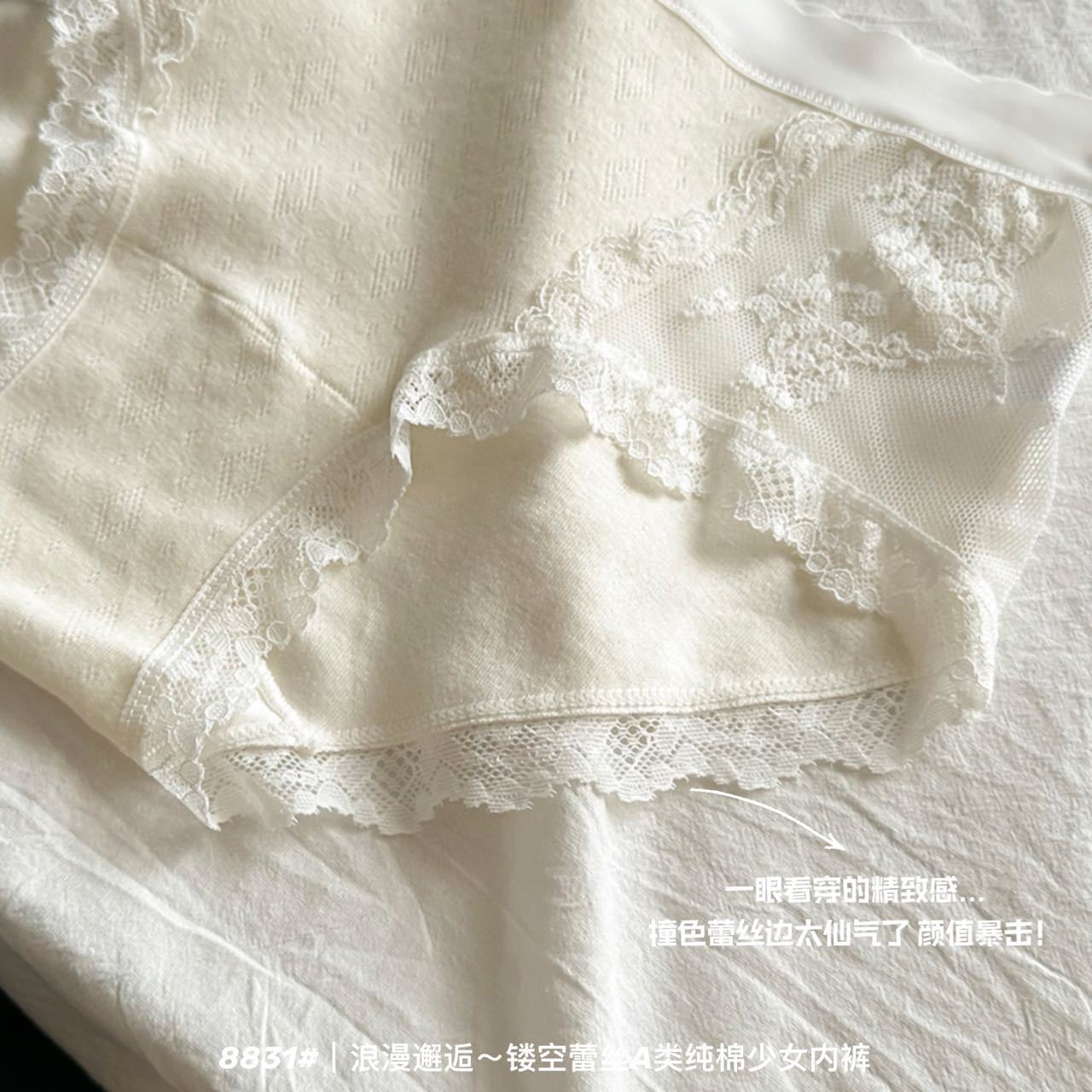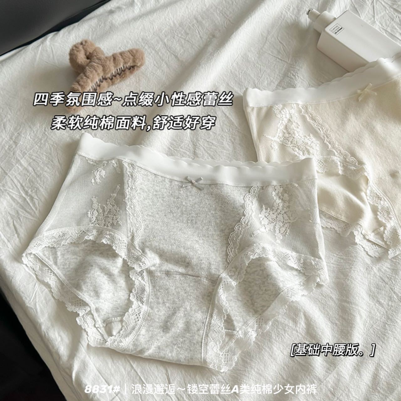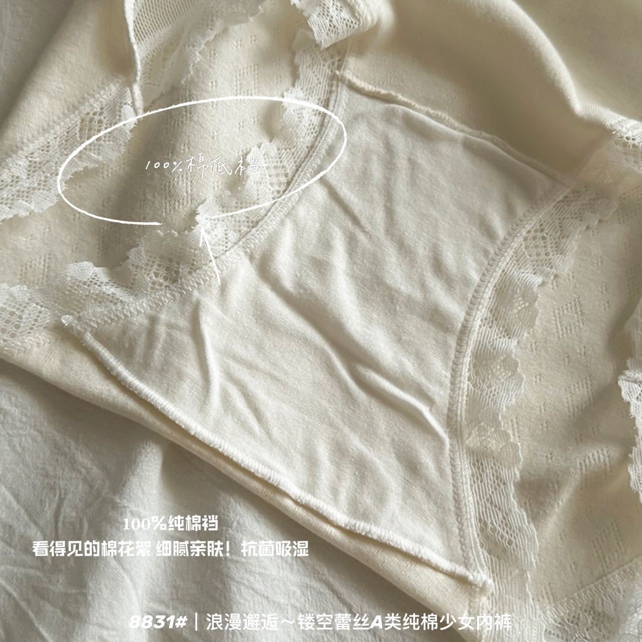 【品名】春日芭蕾 蕾丝法式纯棉内裤4条
