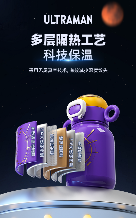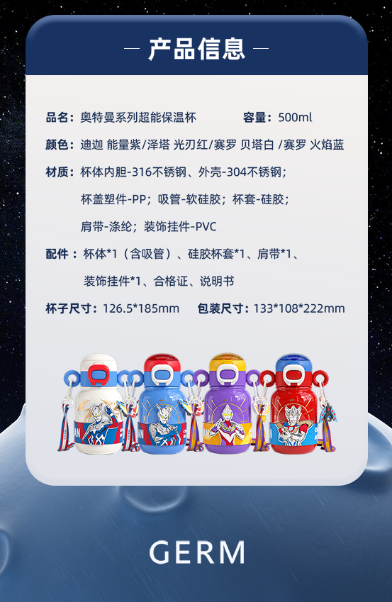 【自营】 格沵GERM 奥特曼系列超能保温杯 双盖使用 316不锈钢 500ml 4色可选