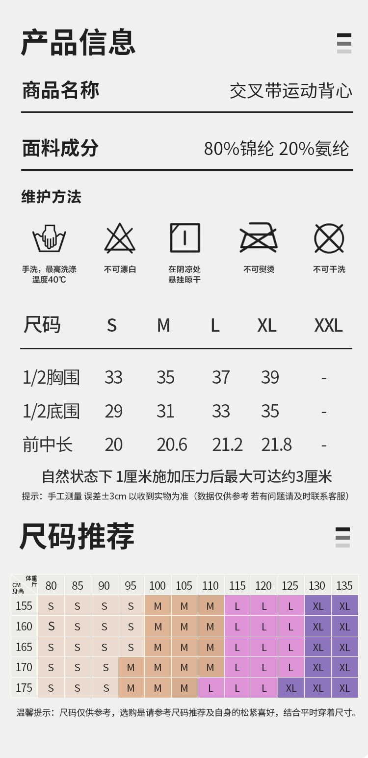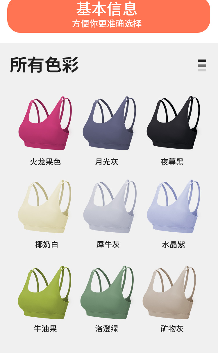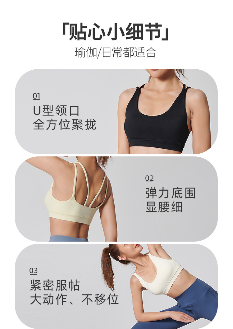 爱帝女士高弹软支撑细肩带美背瑜伽背心自带胸垫