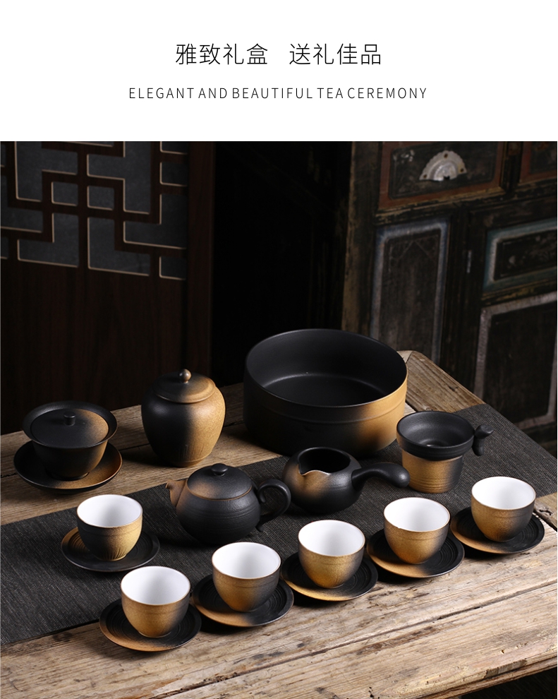 玉青瓷 观自在系列 一壶四杯一公道一茶盘 茶盘包装 观自在A