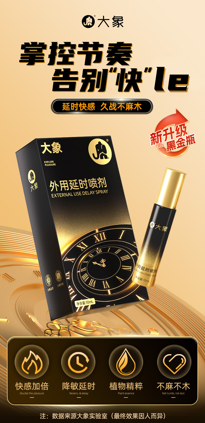 【双旦狂欢·钜惠来袭】 大象延时喷剂黑金款 植物精萃 不麻不木