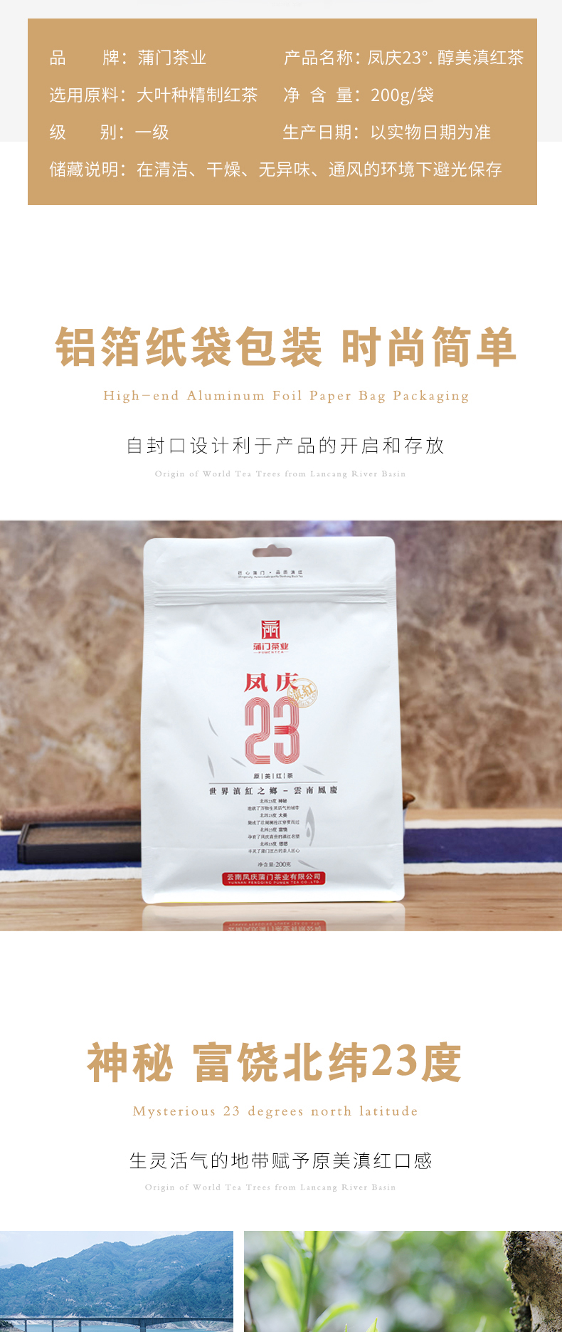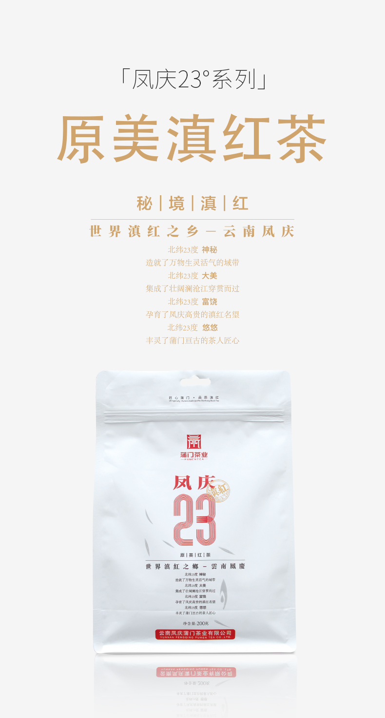 【秘境滇红】蒲门茶业 凤庆23°原美滇红茶 工夫红茶 200g/袋(天猫同款)