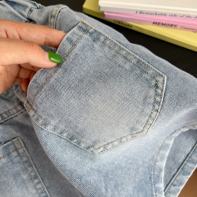 软牛仔面料,又软又舒服浅蓝复古色系,上身也真的好看,裤子前边后面两个口袋的设计,版型挺阔,潮娃必入