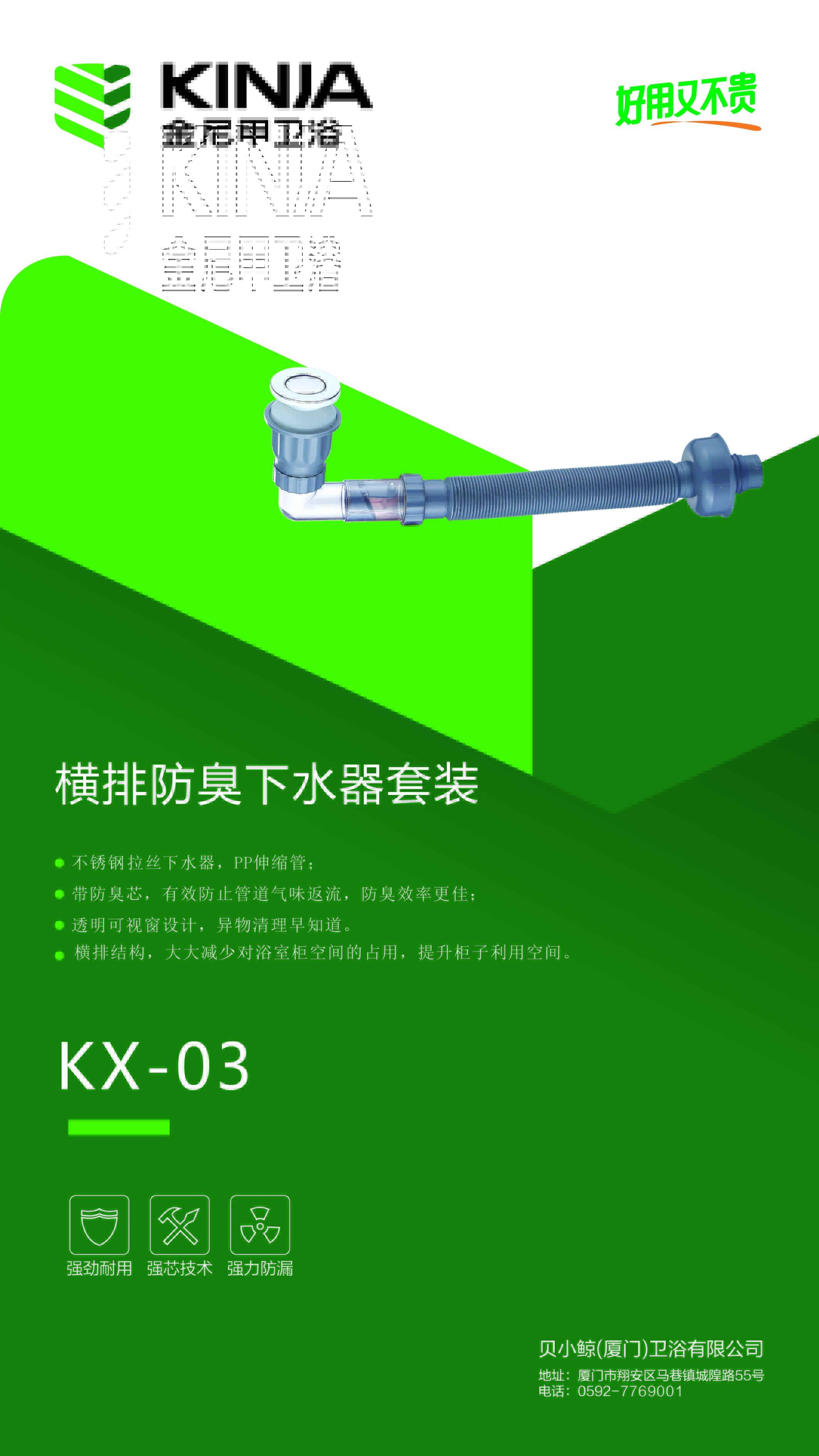 KX-03/横排防臭下水器套装/SUS201拉丝+横排下水管