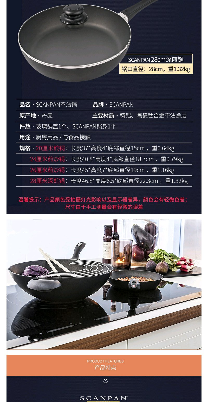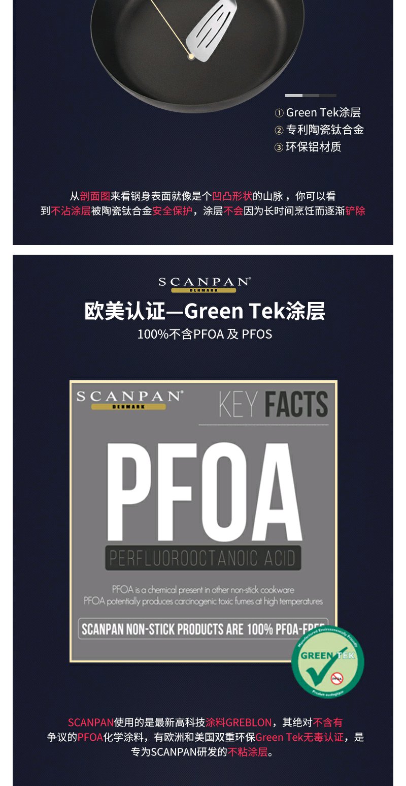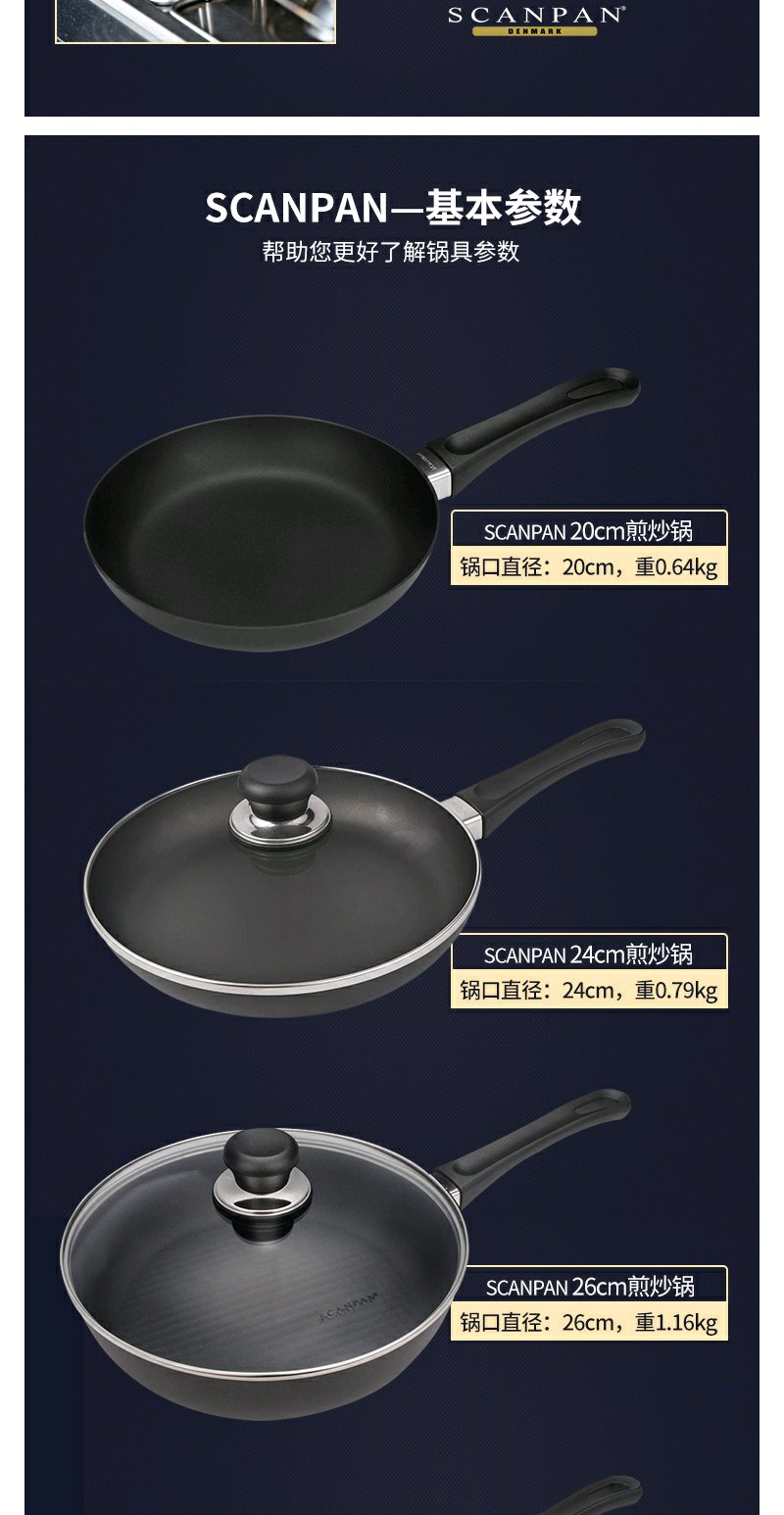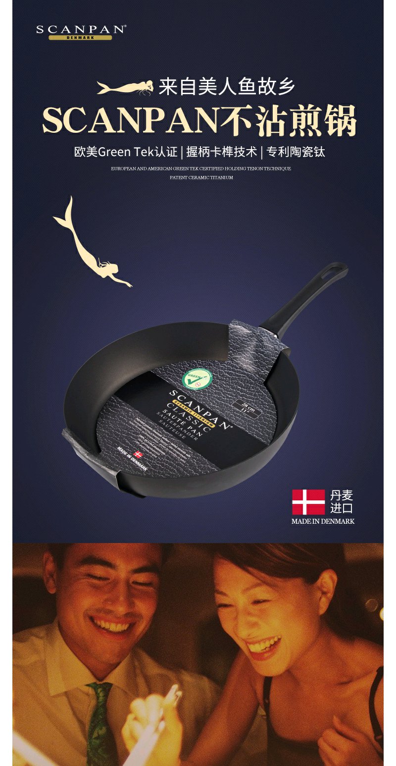 丹麦进口不粘锅SCANPAN陶瓷钛合金不粘涂层平底煎锅无油烟