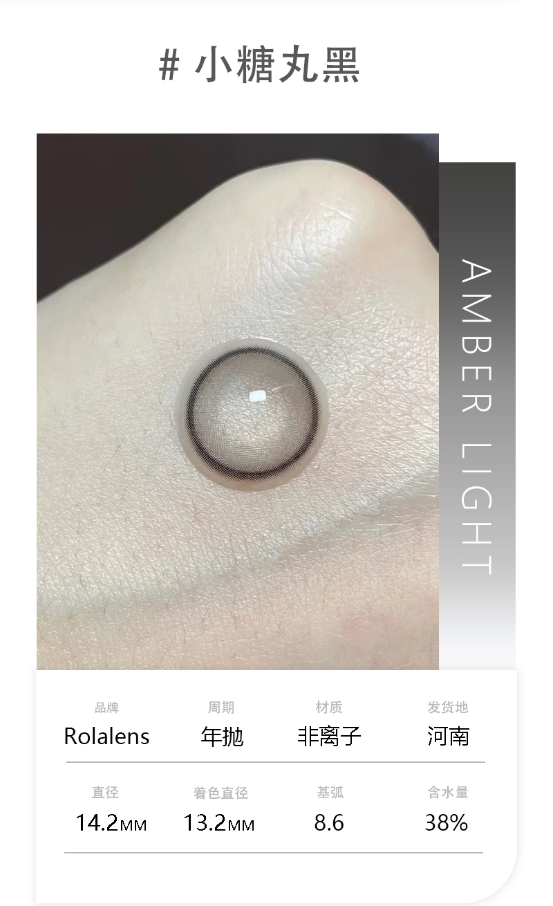 Rolalens 小糖丸黑 年抛 2片14.2mm 参考着色13.2mm 基弧8.6 含水38% 韩国进口