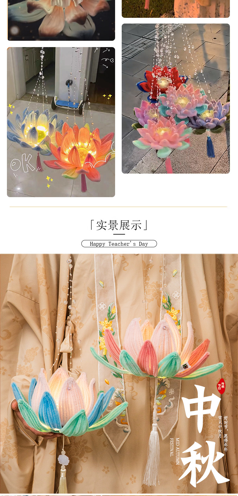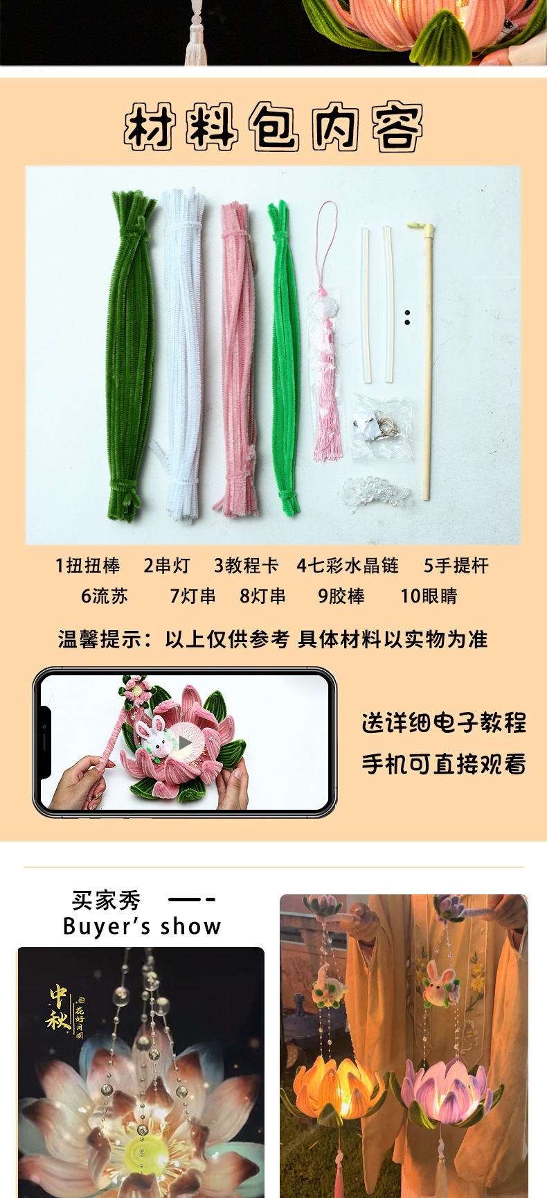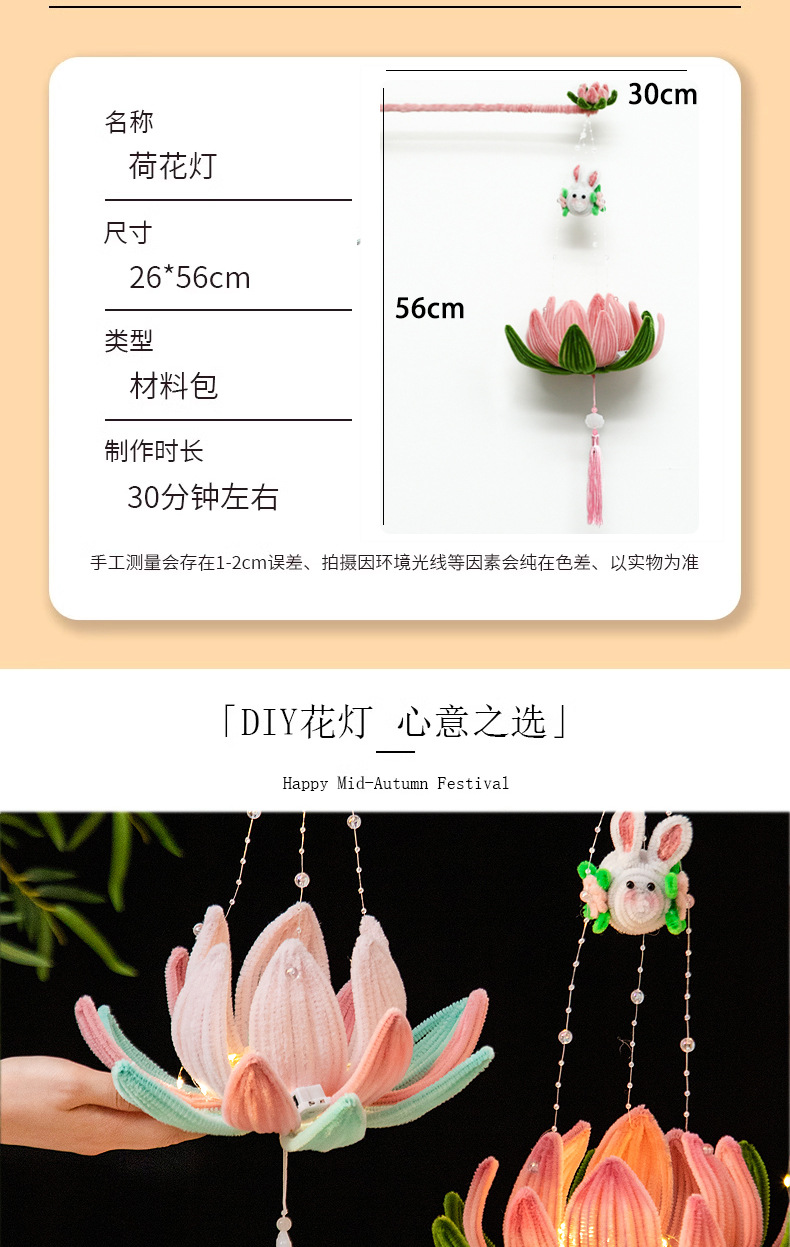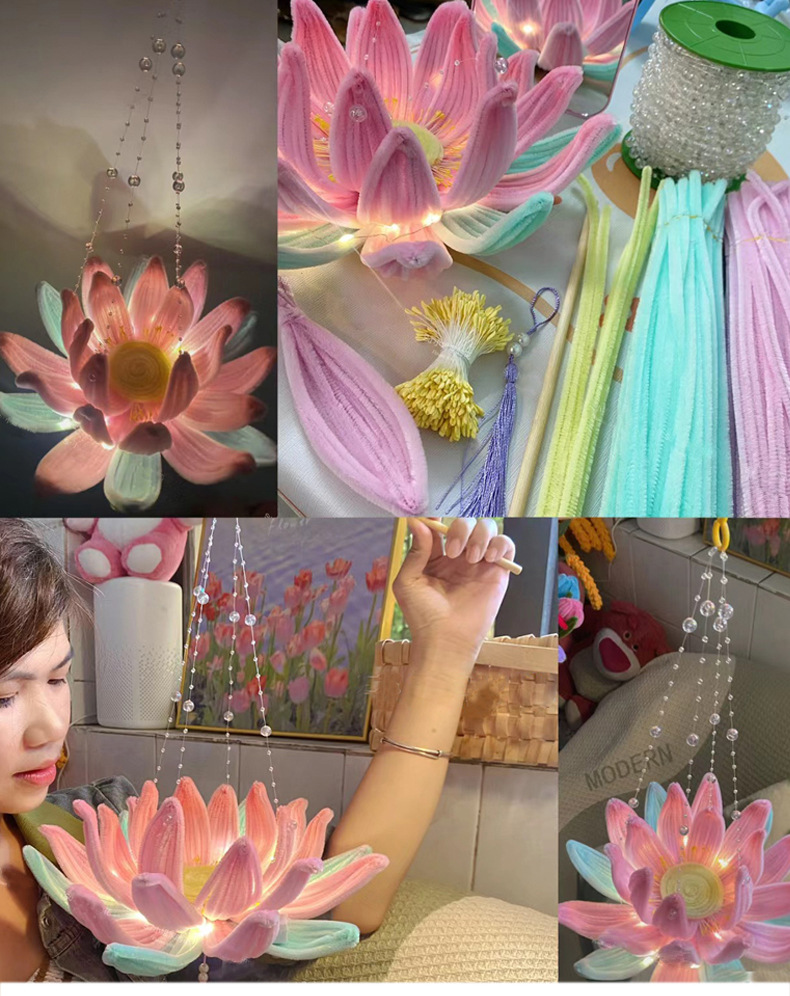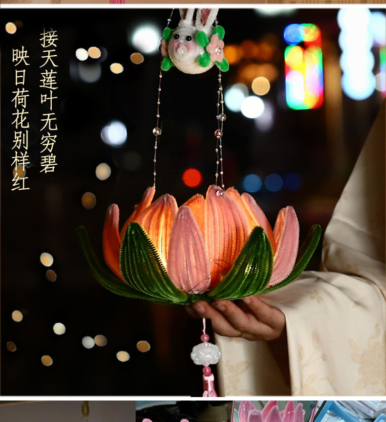 中秋节灯笼手提发光扭扭棒荷花灯莲花灯手工编织diy材料包小礼品