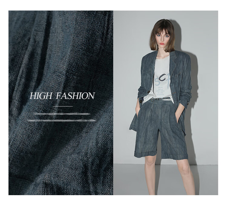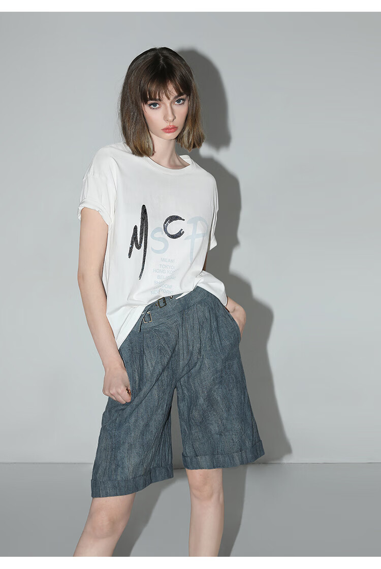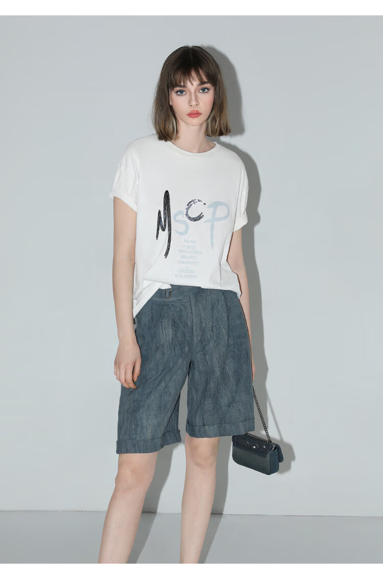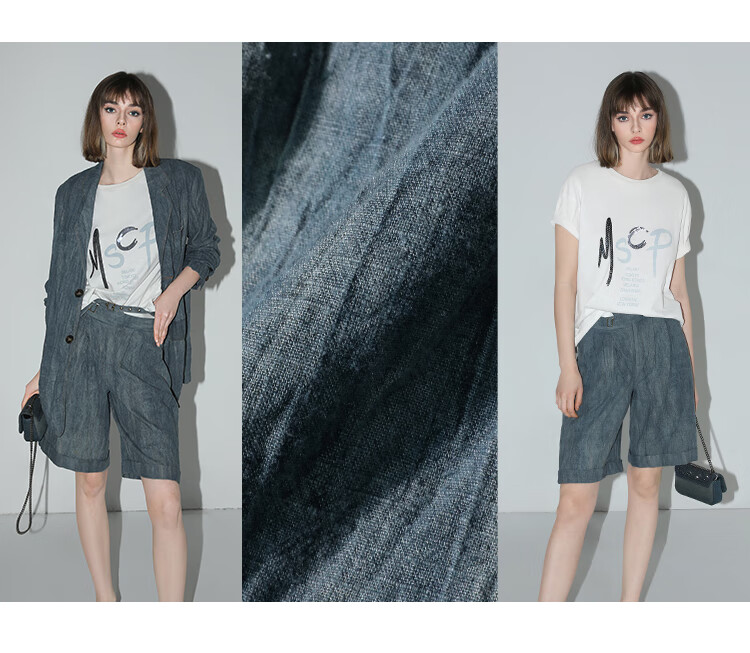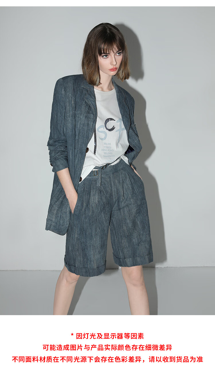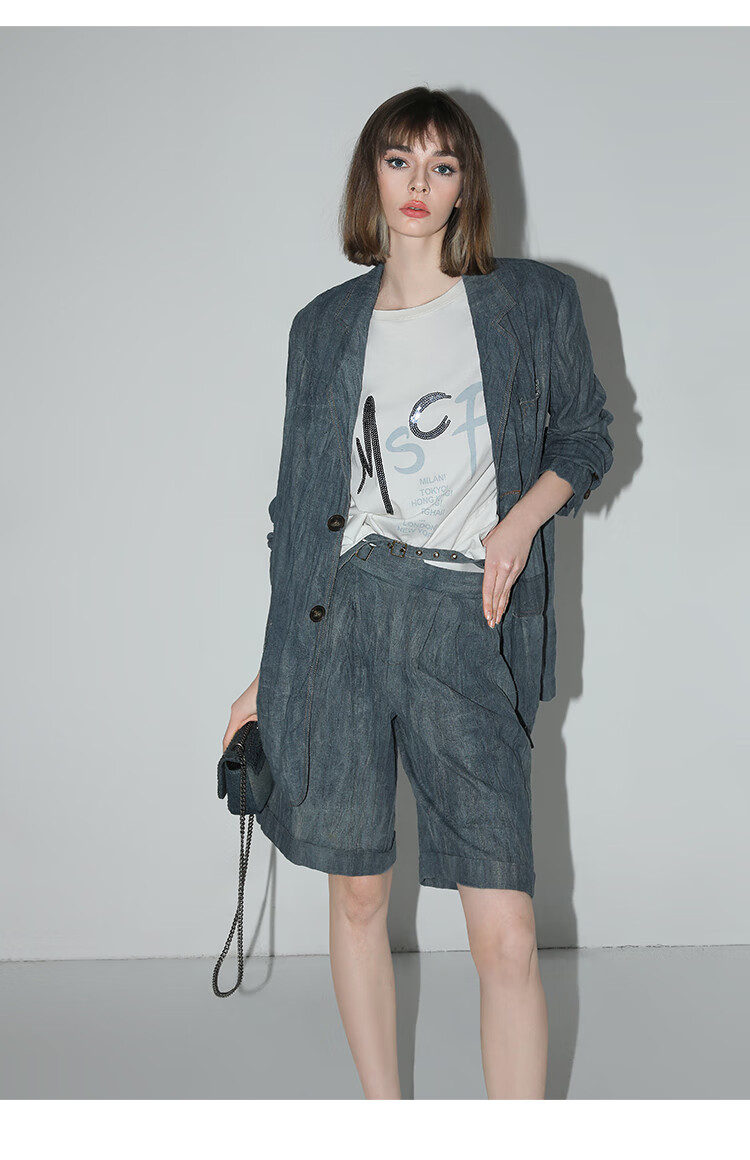 COCOBELLA砂洗炒色亚麻短裤设计感双腰带牛仔风打褶裤SO0002