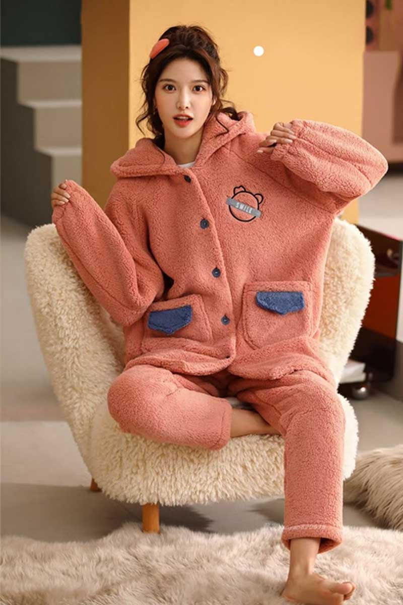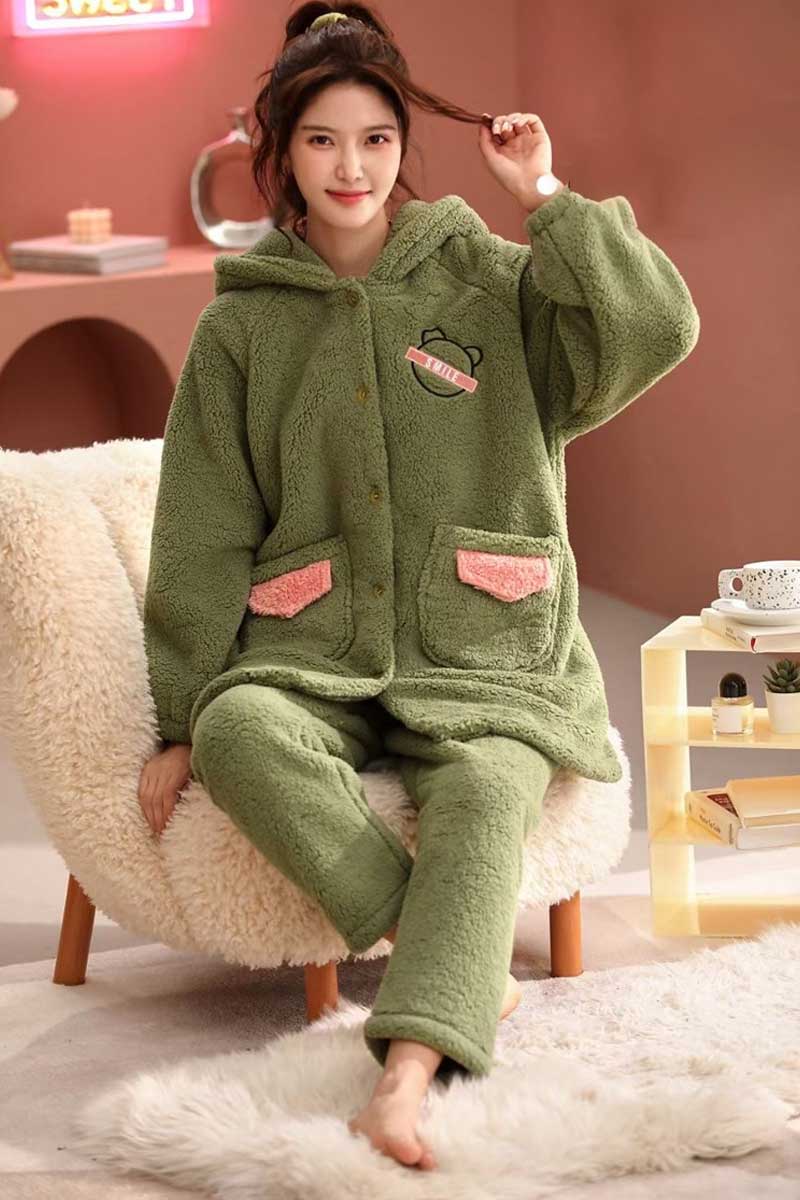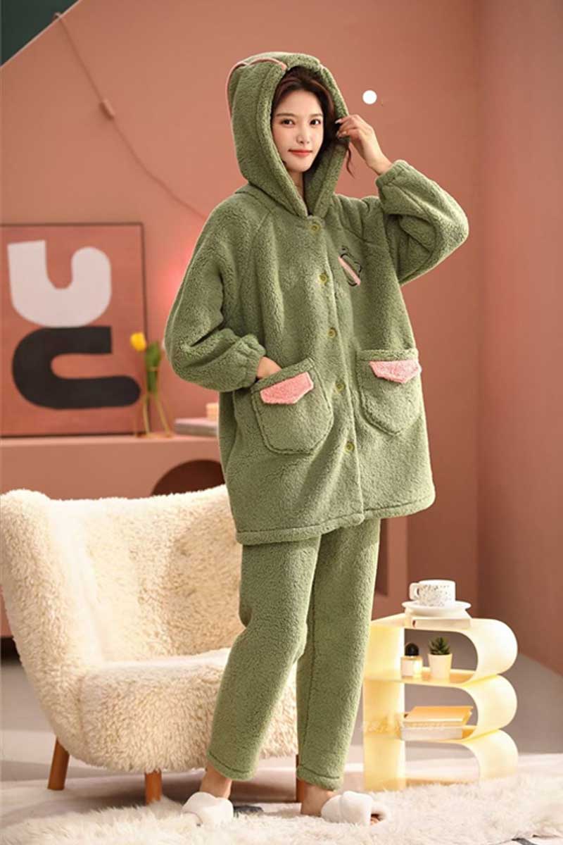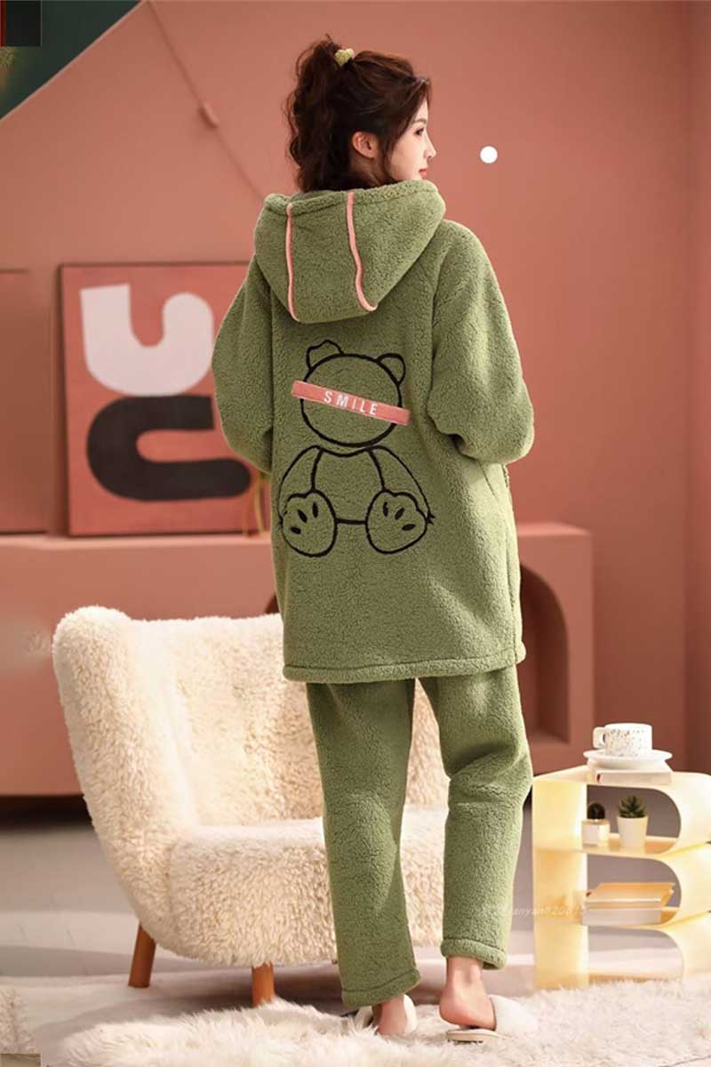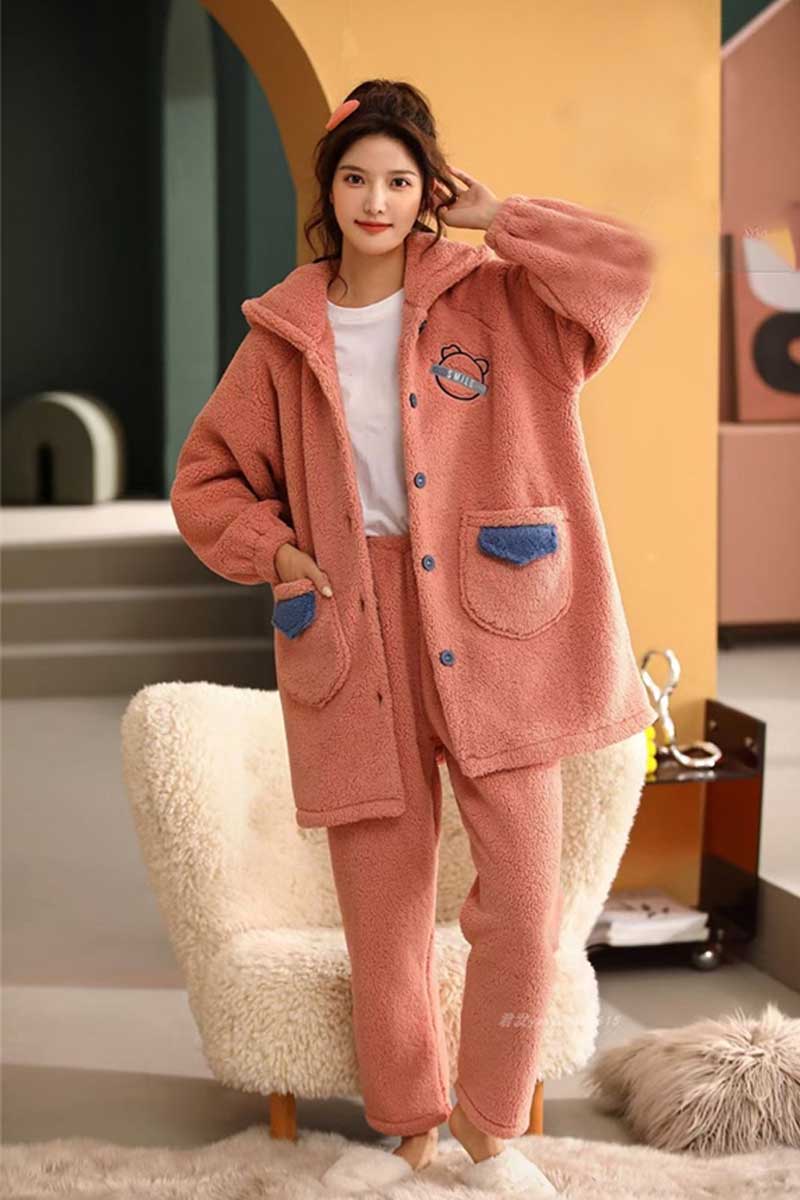 女士秋冬季加厚睡衣套装中长款加绒双层[FF22838]