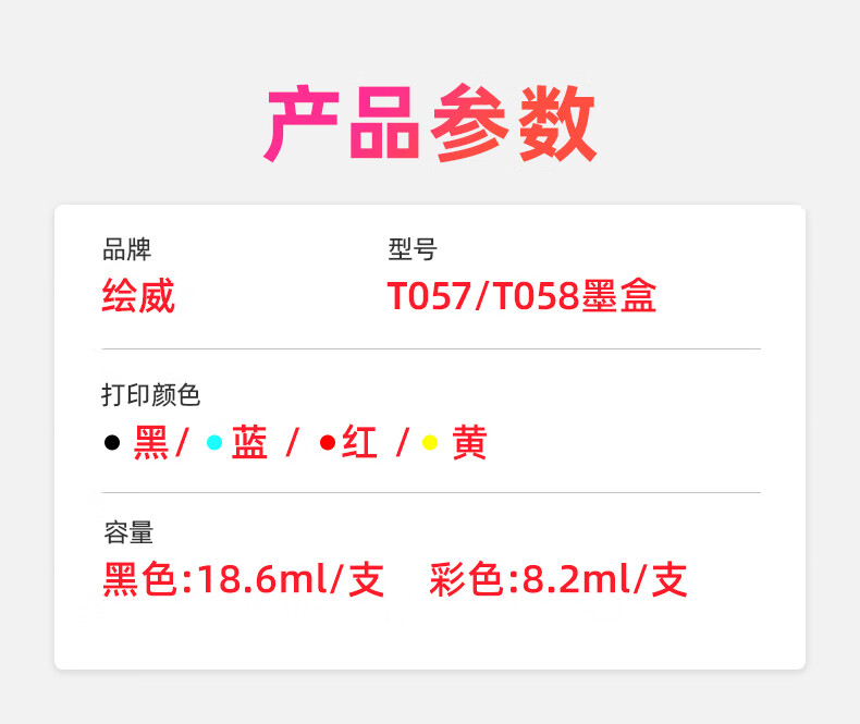 绘威T057/T058黑彩墨盒套装 适用爱普生EPSON ME1 ME1 ME100打印机墨盒 墨水