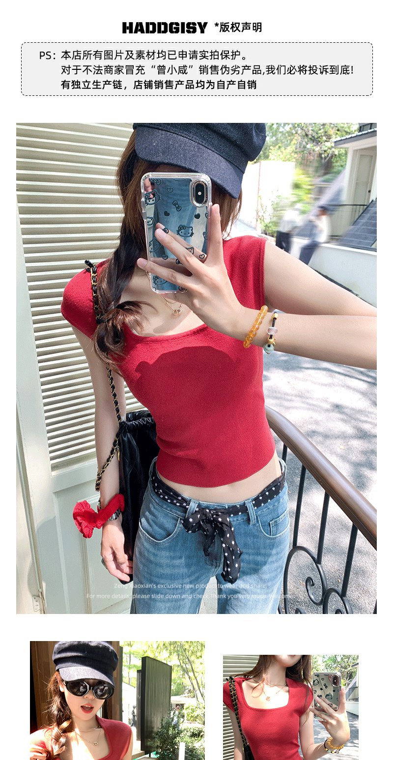 <曾小咸推荐>现货秒杀!最后一波 !!2色气质方领修身小飞袖T恤 日常99.99 立减50 秒杀49.99!