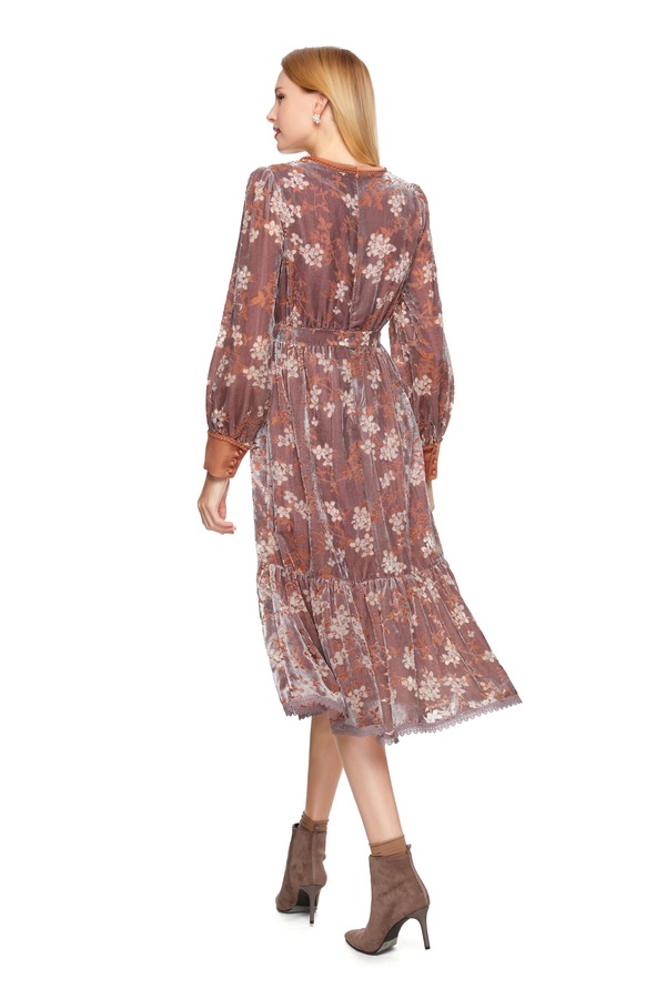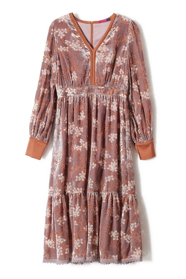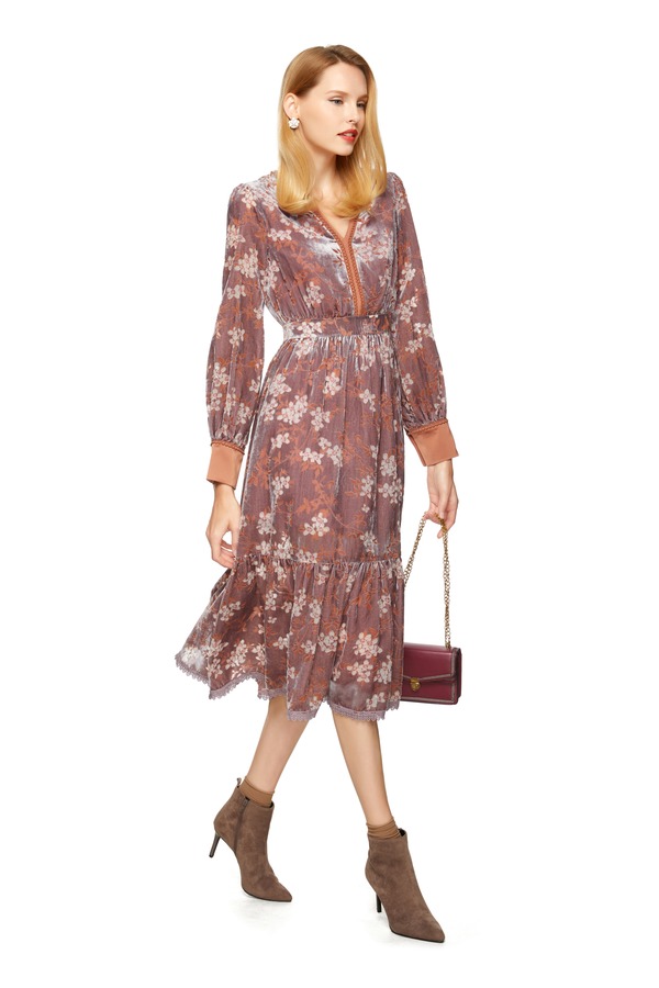 AVA 藕粉色烧花V领连衣裙 8607
