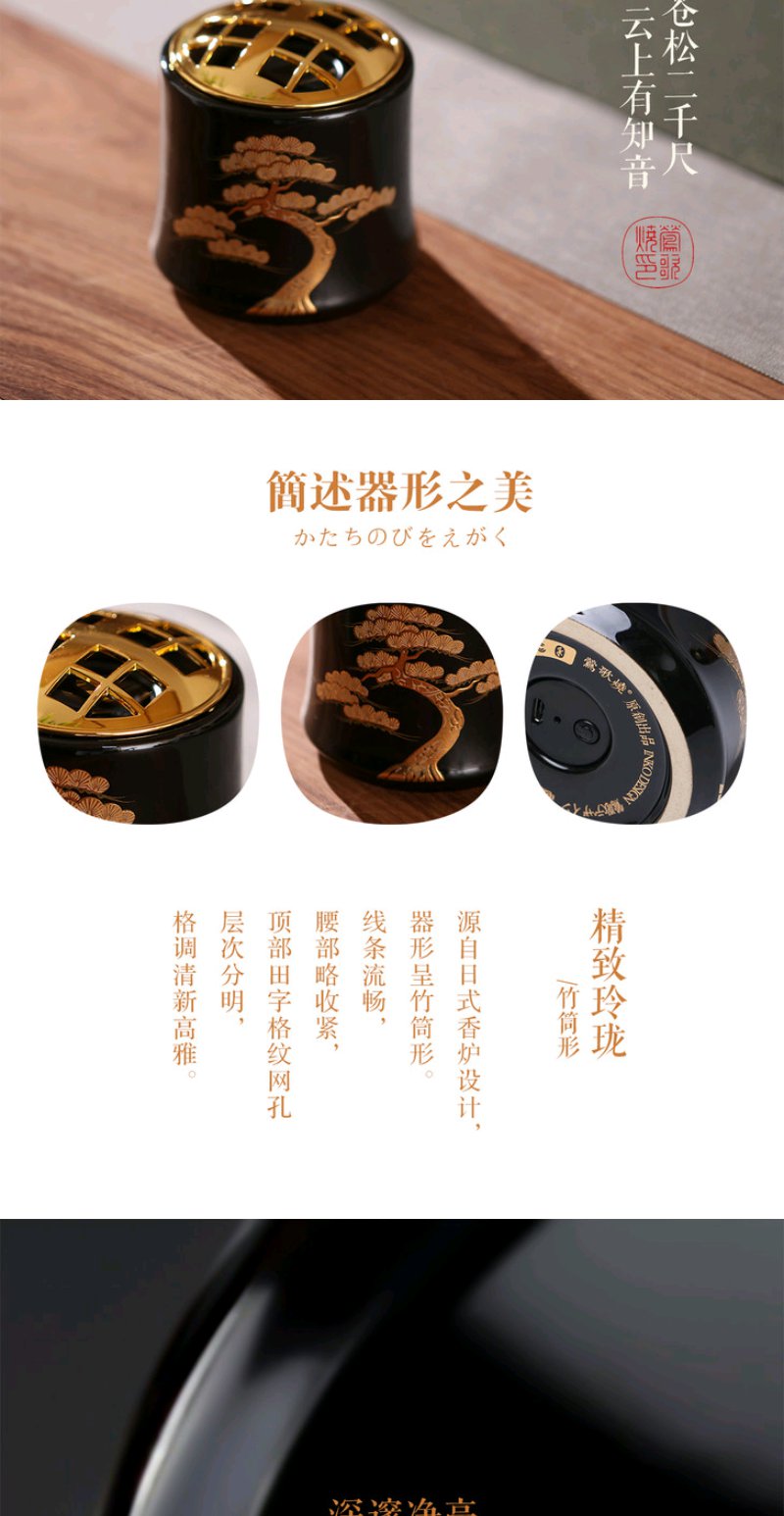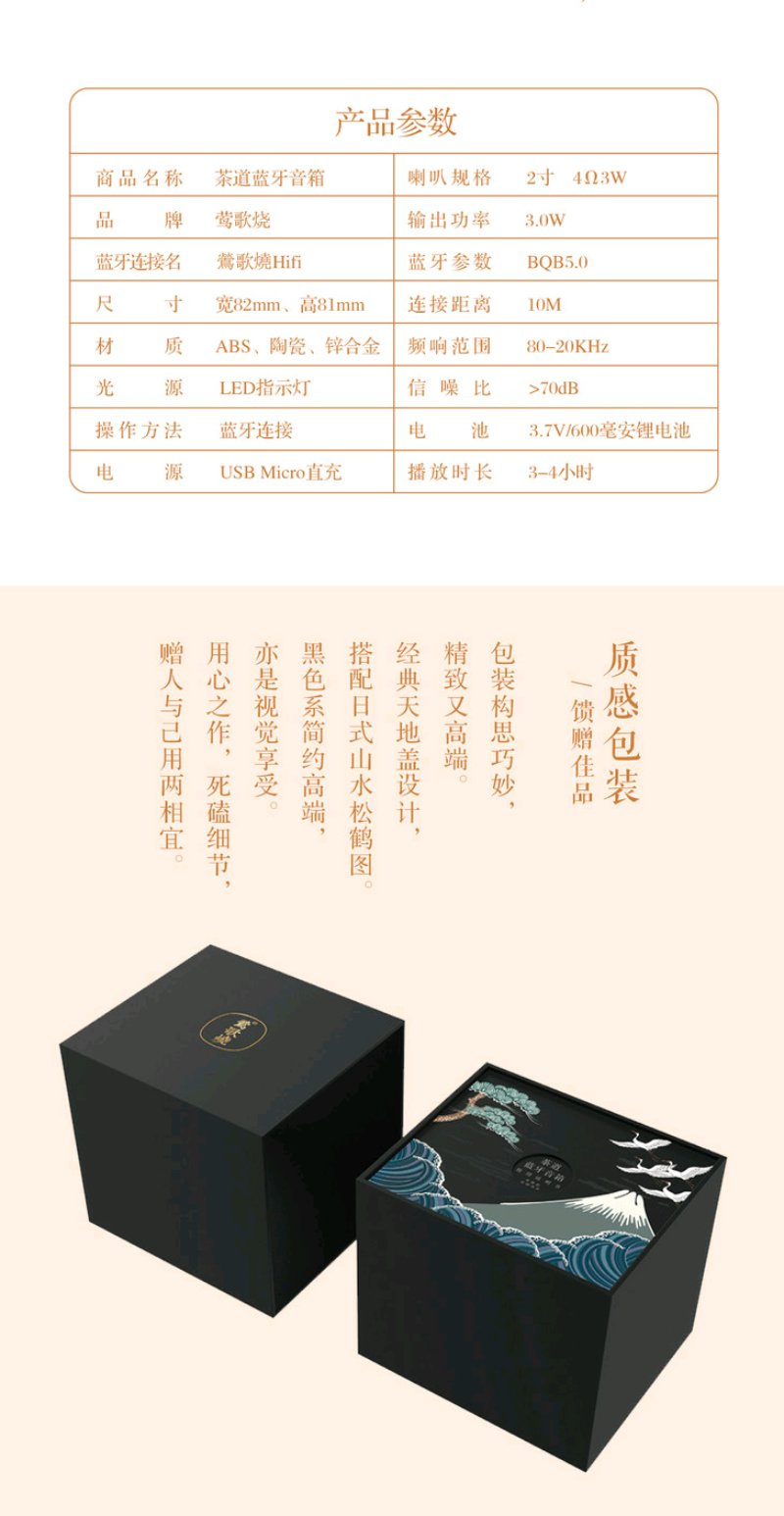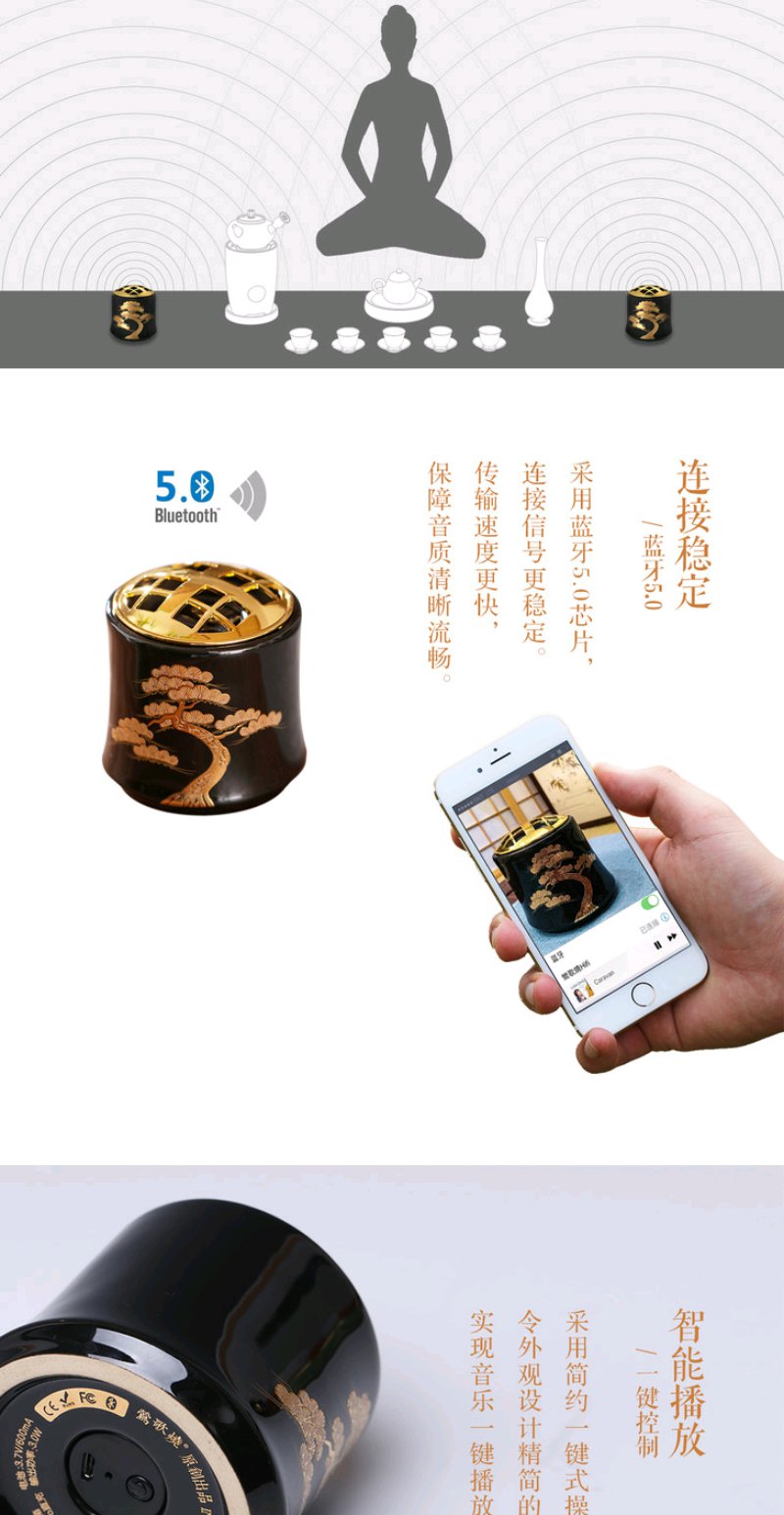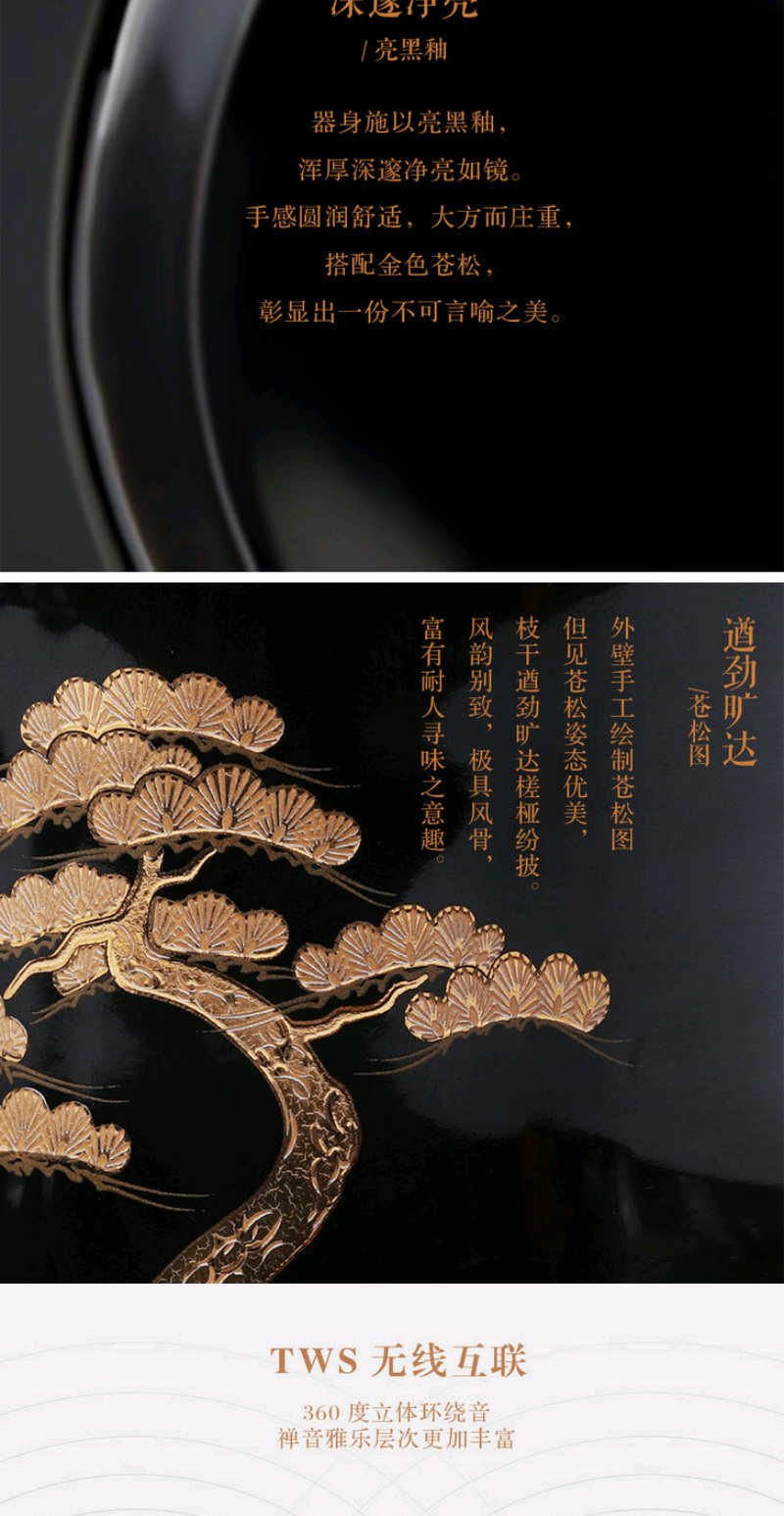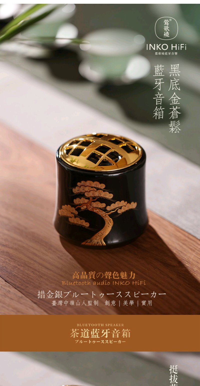 莺歌烧 黑底金苍松蓝牙音箱 陶瓷蓝牙音箱家用茶台摆件HIFI音响高档禅意茶道摆件