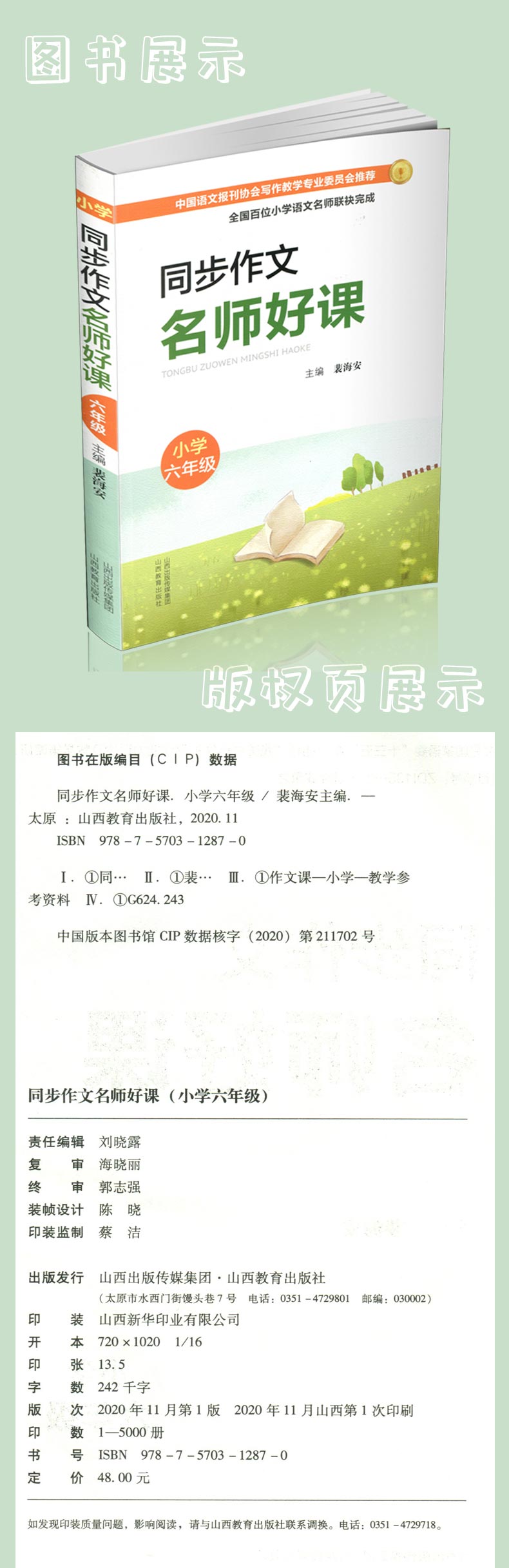 正版同步作文 名师好课 小学六年级 教学参考资料 主编 裴海安 山西教育出版社出版