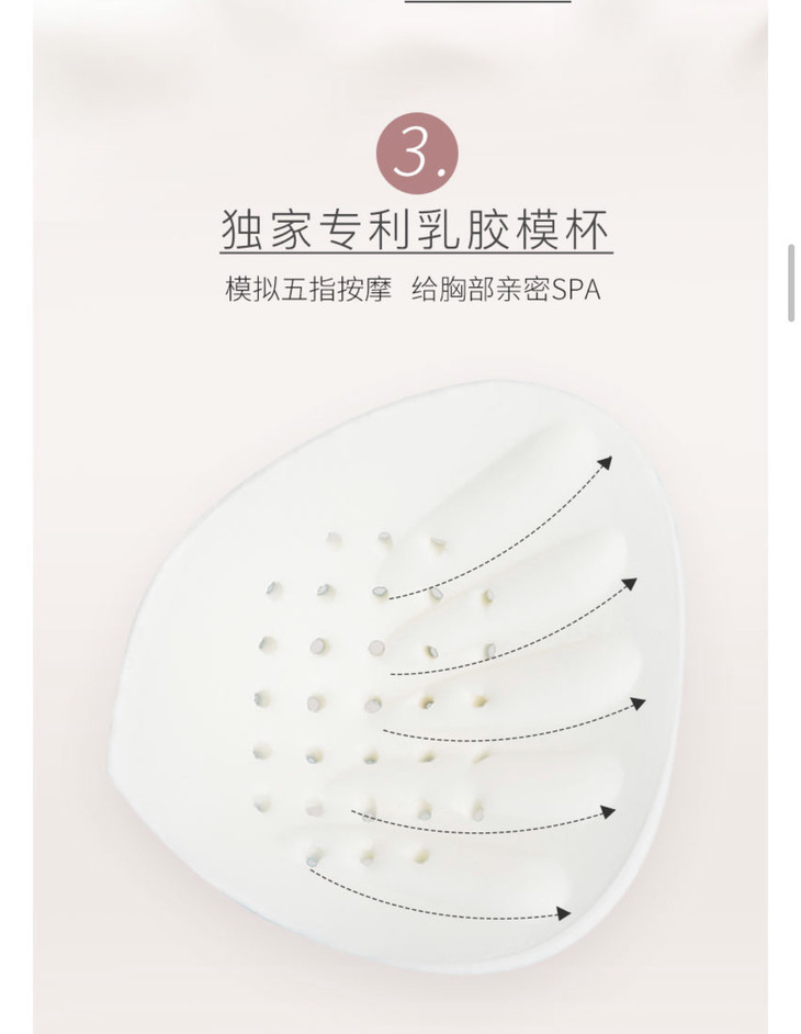 按照亚洲女性胸部发育曲线进行专属定制,以性感五指杯为特点,让女性穿上这样定制的乳胶内衣,感觉不到任何的束缚感、压迫感,仿佛有双温柔的手掌,轻轻托起胸部,时刻保持女性胸部的完美胸型。不跑杯不空杯,在跳跃、奔跑等大幅度动作下,都能够保持胸型不变,穿再久也不变形,不走样。