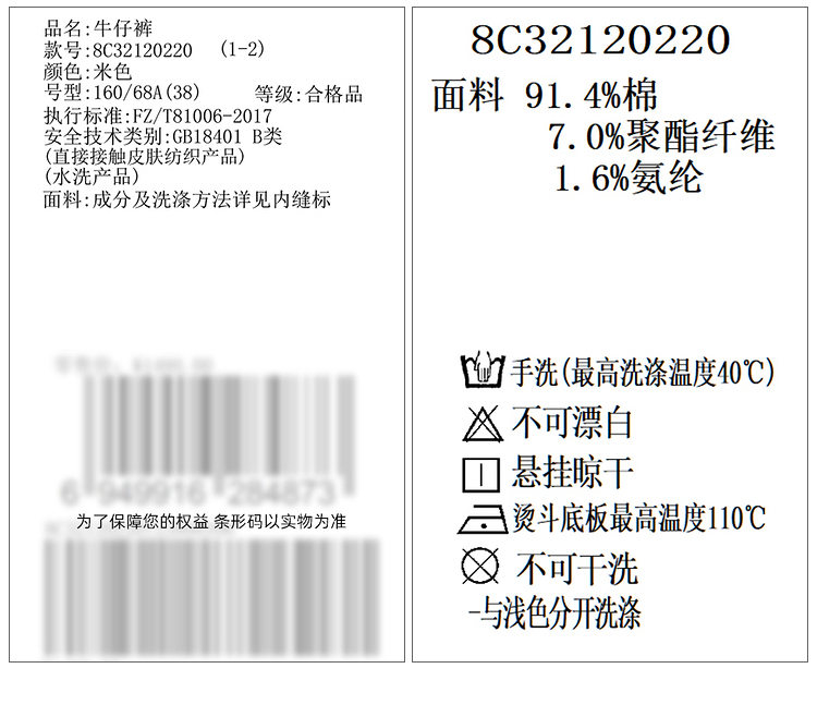 YINER音儿2022春季新款修身直筒九分牛仔裤8c32120220