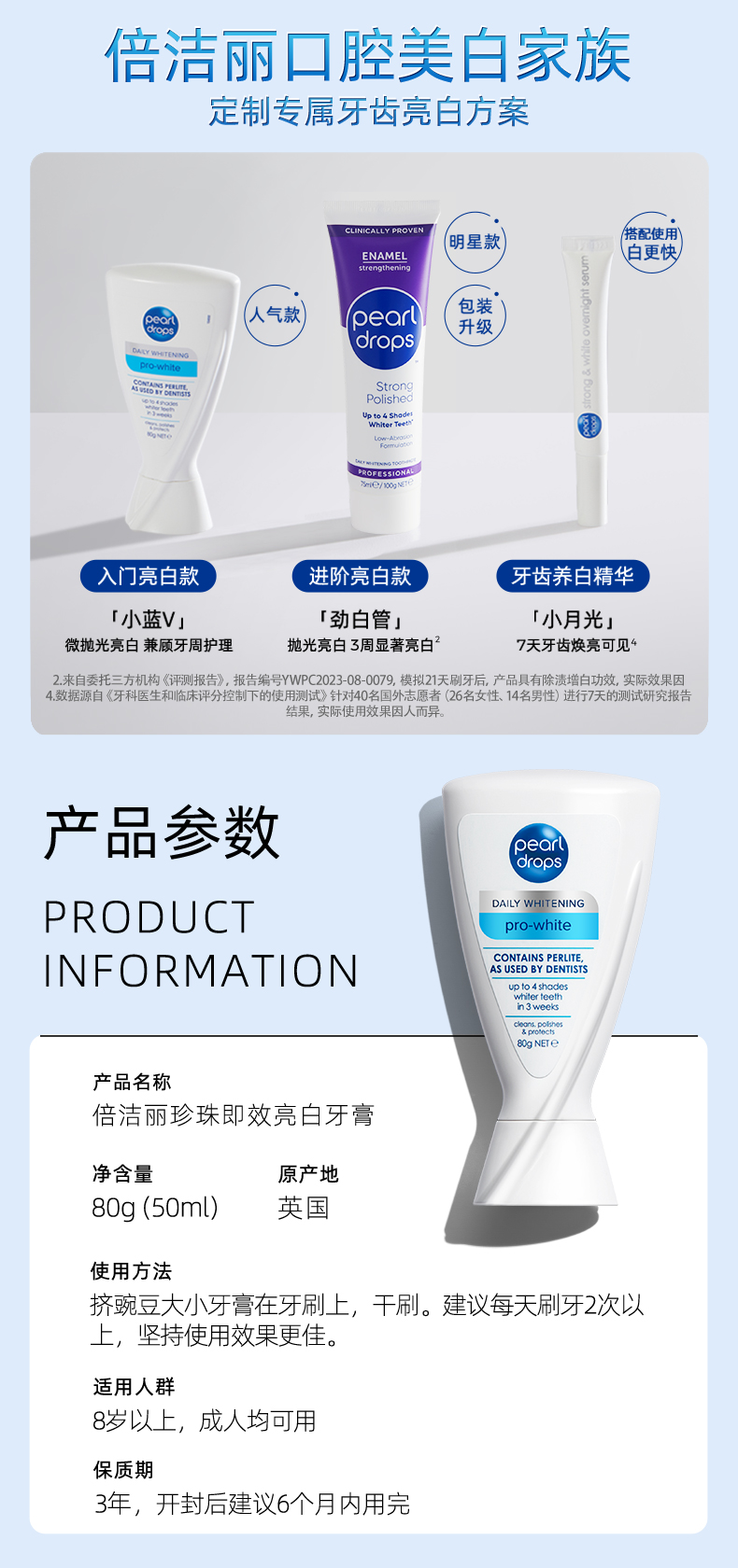 【品名】【赠牙线1盒】PearlDrops倍洁丽珍珠即效亮白牙膏80g/支+炭能清新牙膏80g/支 【规格】蓝V80g*1支+黑V80g*1支 【备案编号】 蓝V:国牙膏网进字(沪)2023000040 黑V:国牙膏网进字(沪)2023000169 【产地】英国 【保质期】3年 【发货包装】独立包装 【发货地】浙江 【发货快递】中通、圆通随机发 【补邮费地区】新疆、西藏+10元/单 【发货时效】48-72小时,周末节假日顺延 |