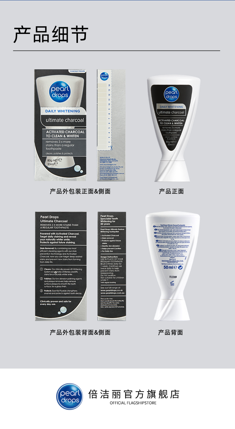【赠牙线1盒】PearlDrops倍洁丽珍珠即效亮白牙膏80g/支+炭能清新牙膏80g/支
