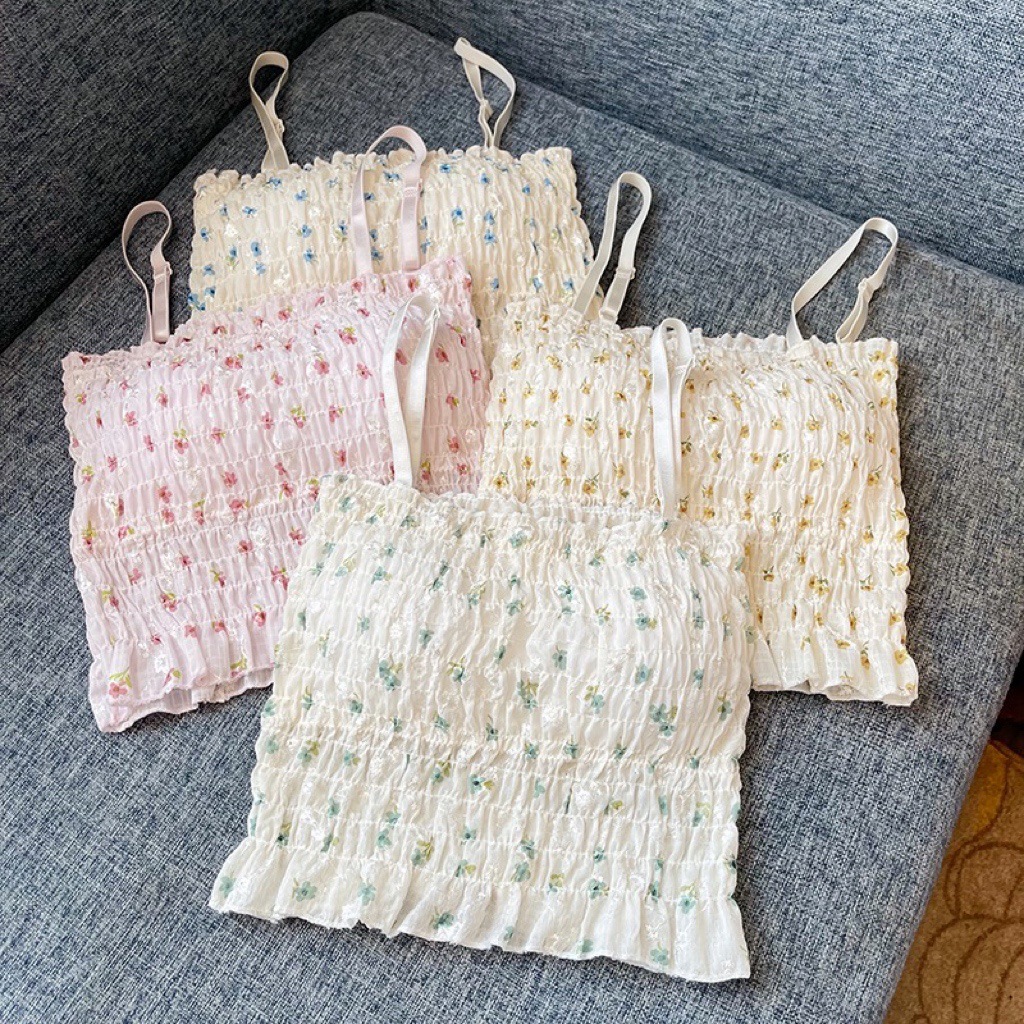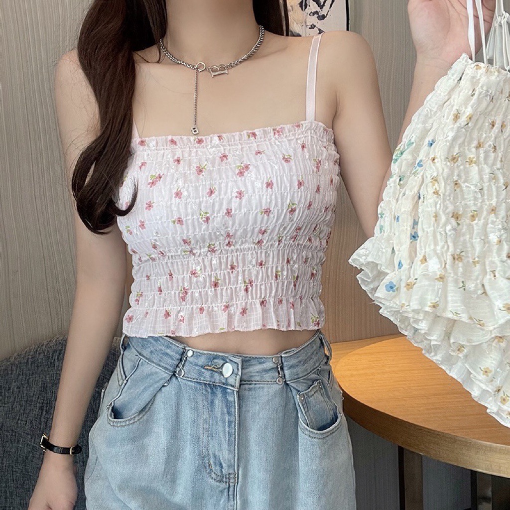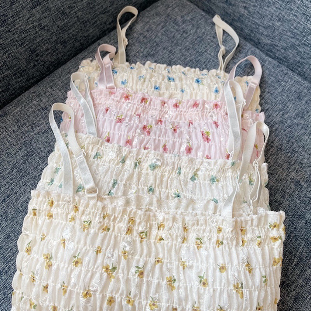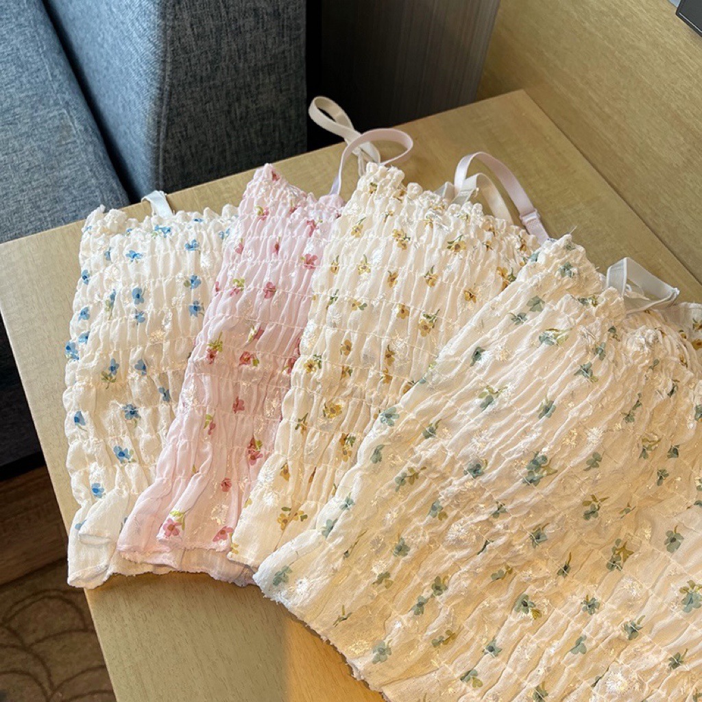 【纯欲甜美❗清新碎花吊带】设计感褶皱碎花,自带胸垫,肩带可调节,褶皱裹胸外穿辣妹美背抹胸吊带背心QQ
