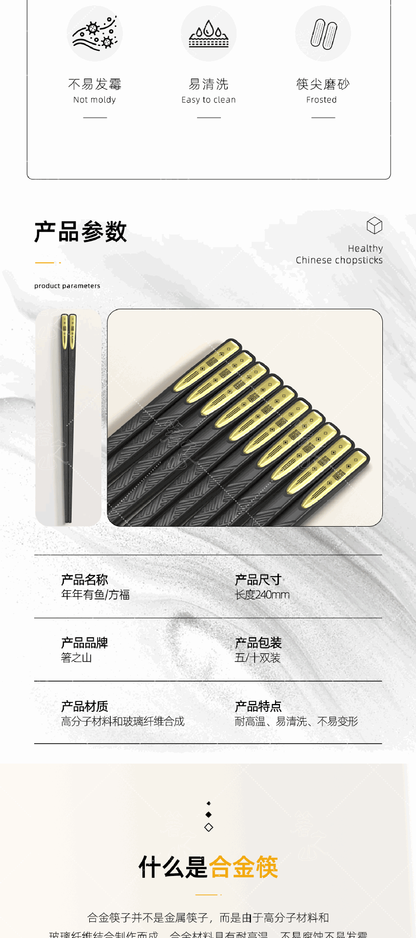 「10双装!轻奢质感」新款雅韵筷子轻奢套装 厨房用品餐具筷子家用高颜值筷子10双一人一筷餐饮用具