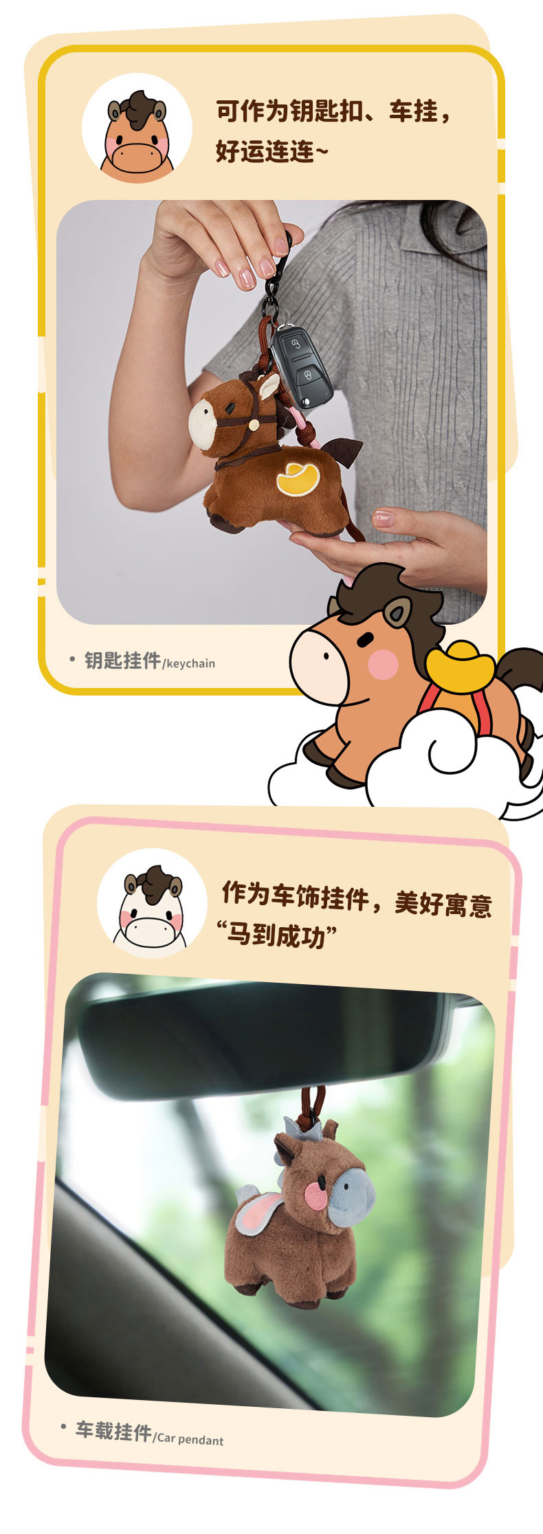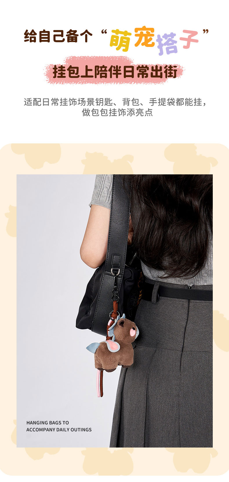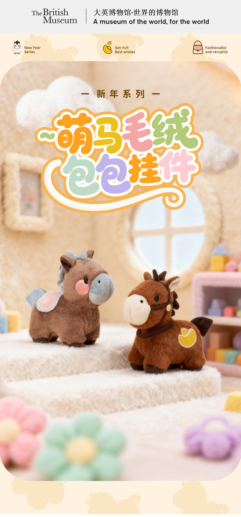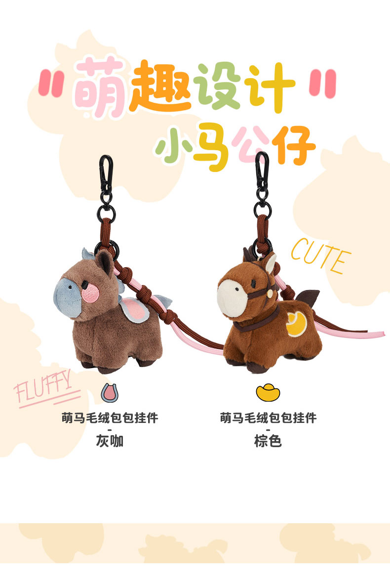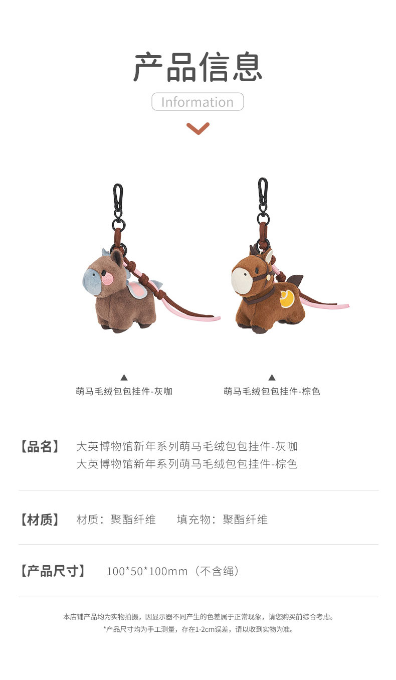 大英博物馆 新年系列 萌马毛绒包包 挂件 灰咖 棕色