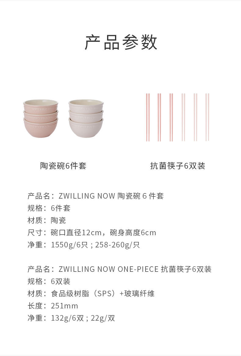 【双立人抗菌筷子碗】德国双立人NOW六色碗筷子家用陶瓷碗筷套装组合餐具套装一人一碗