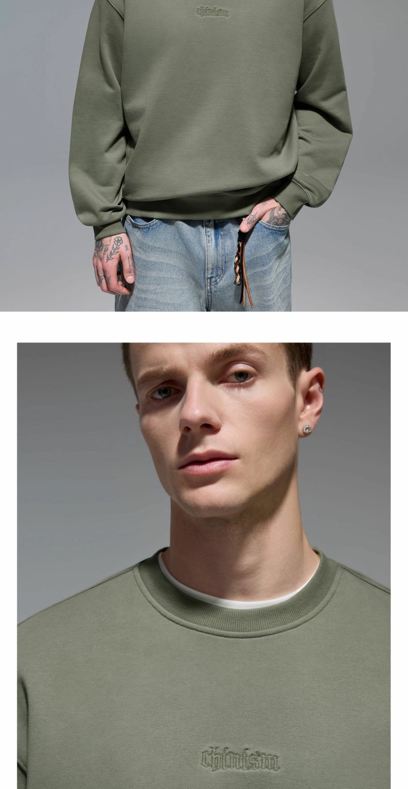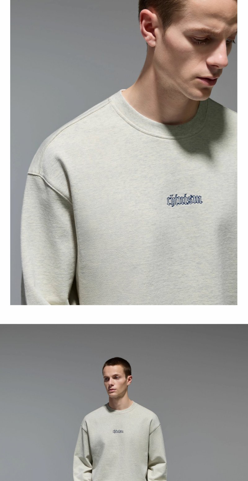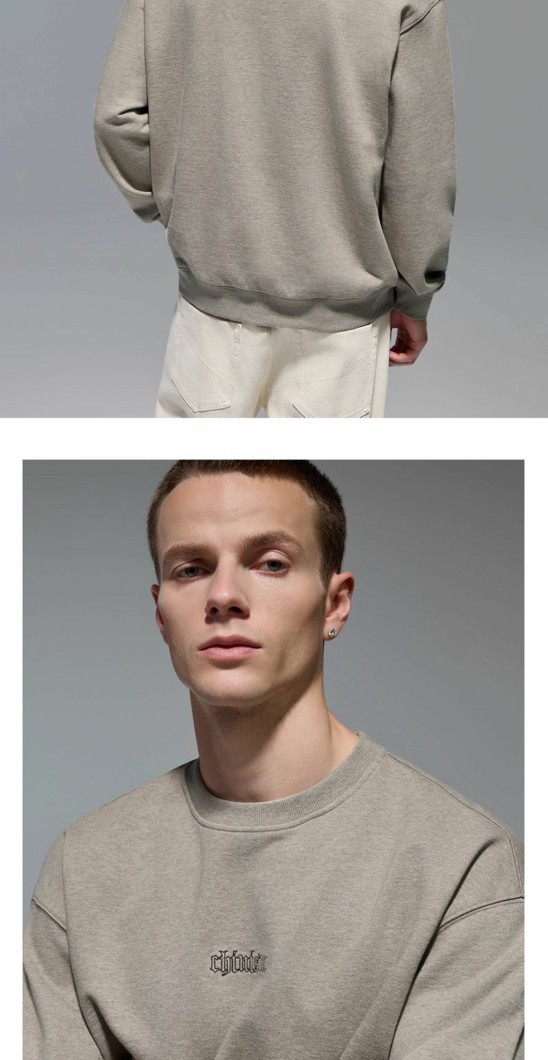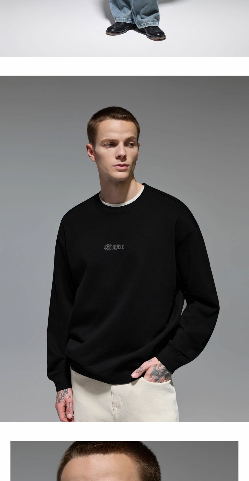 CHINISM赤尘 刺绣圆领卫衣男秋季宽松套头男士长袖休闲无帽上衣