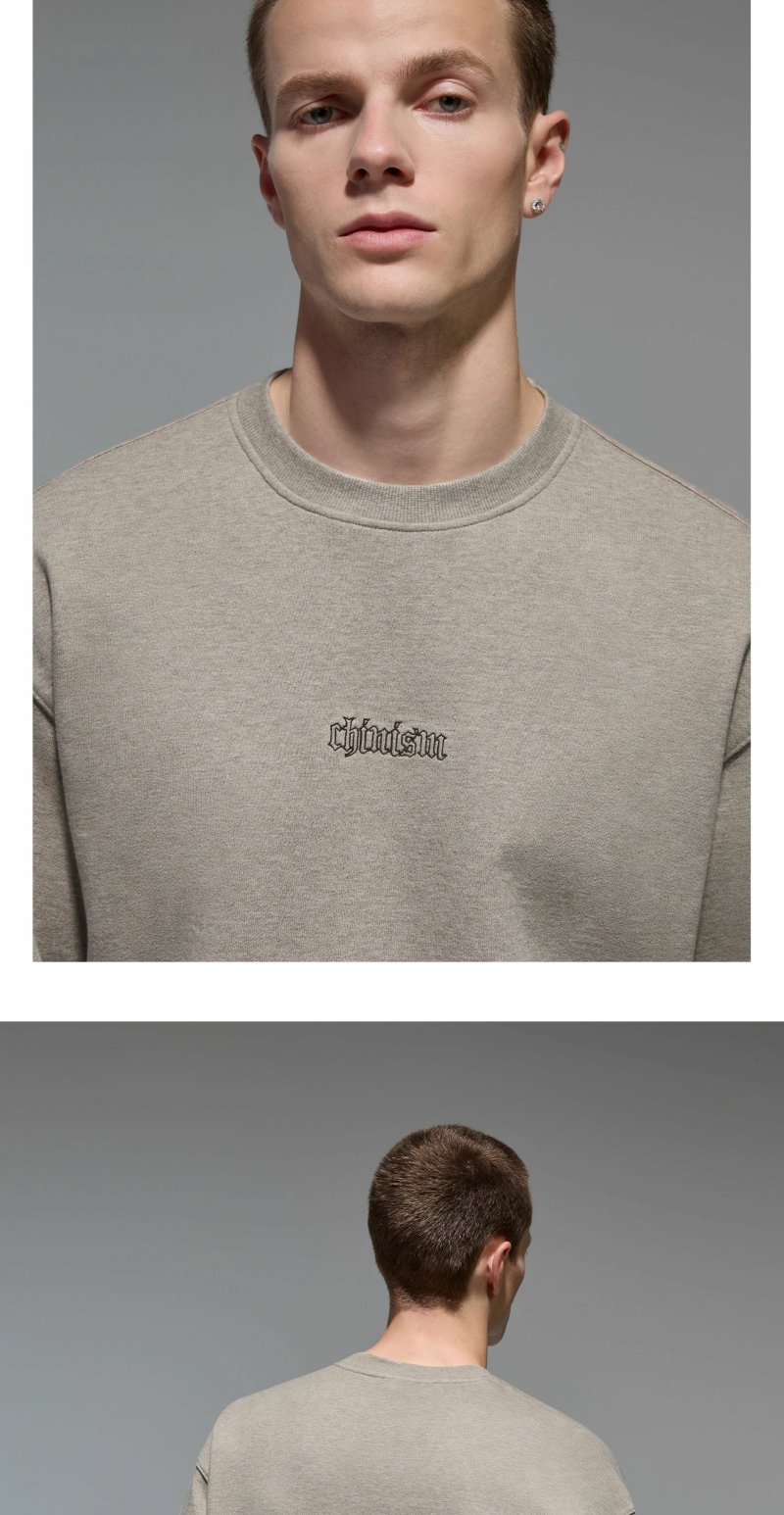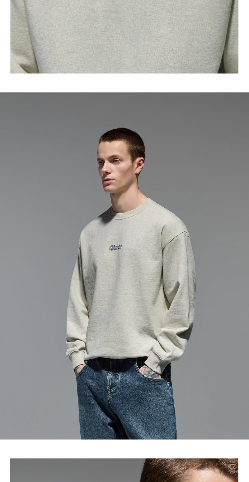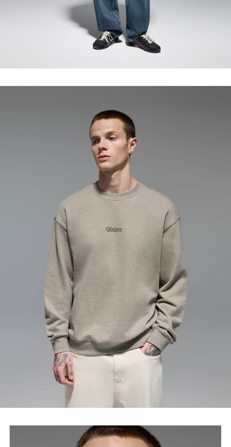 CHINISM赤尘 刺绣圆领卫衣男秋季宽松套头男士长袖休闲无帽上衣