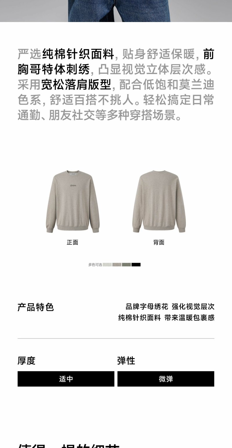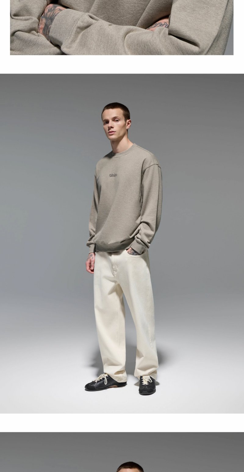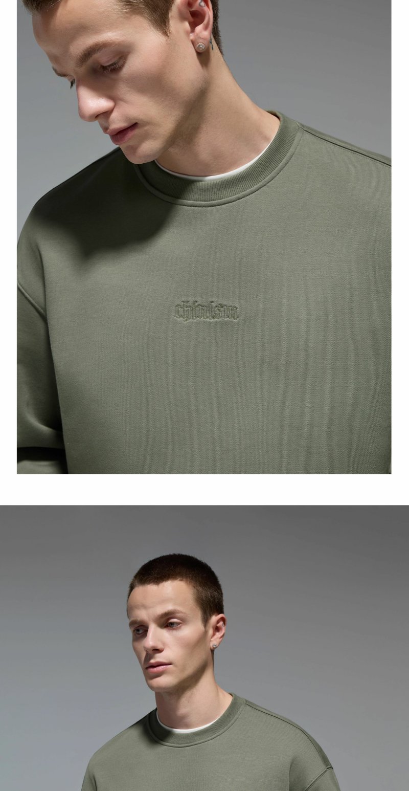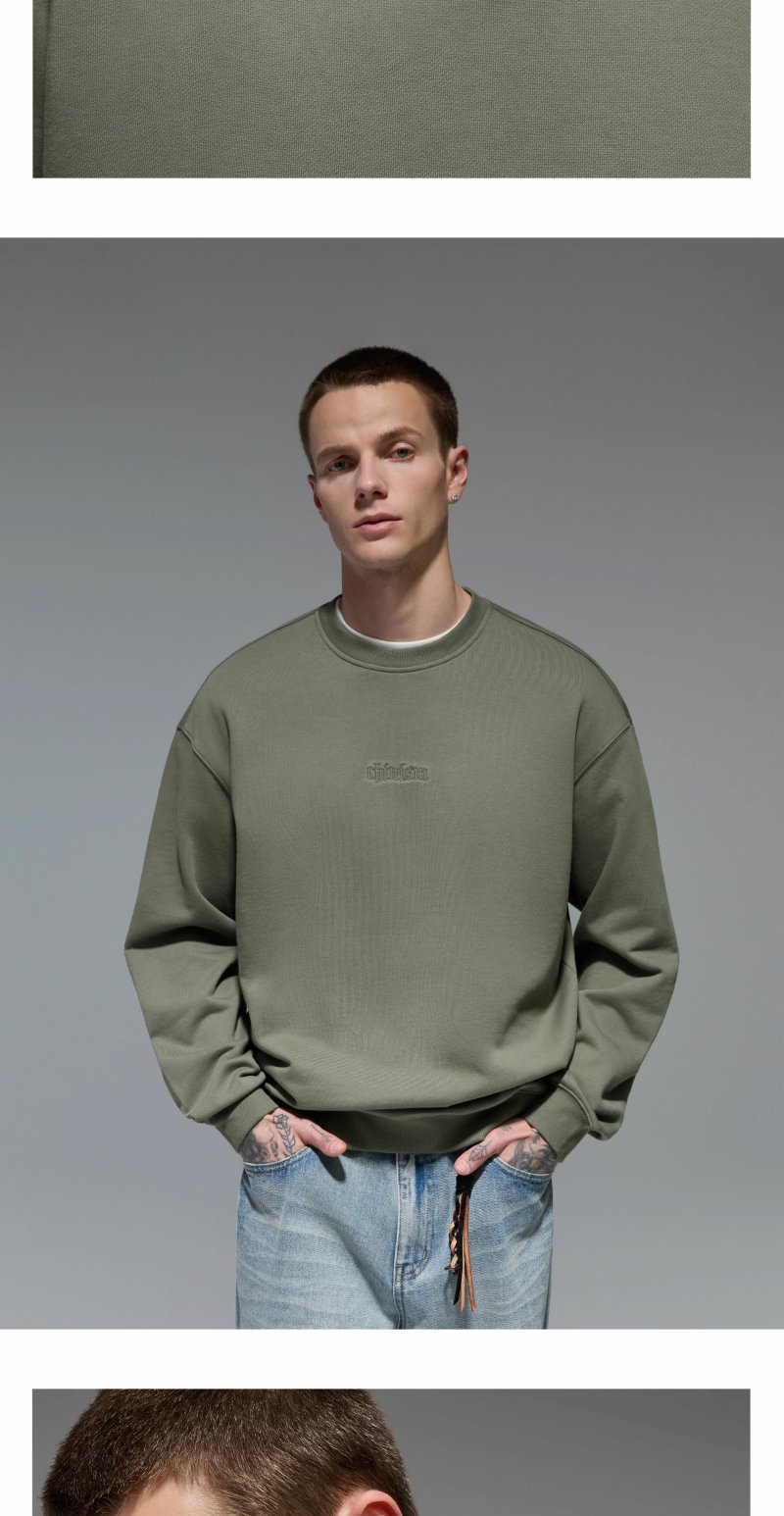 CHINISM赤尘 刺绣圆领卫衣男秋季宽松套头男士长袖休闲无帽上衣