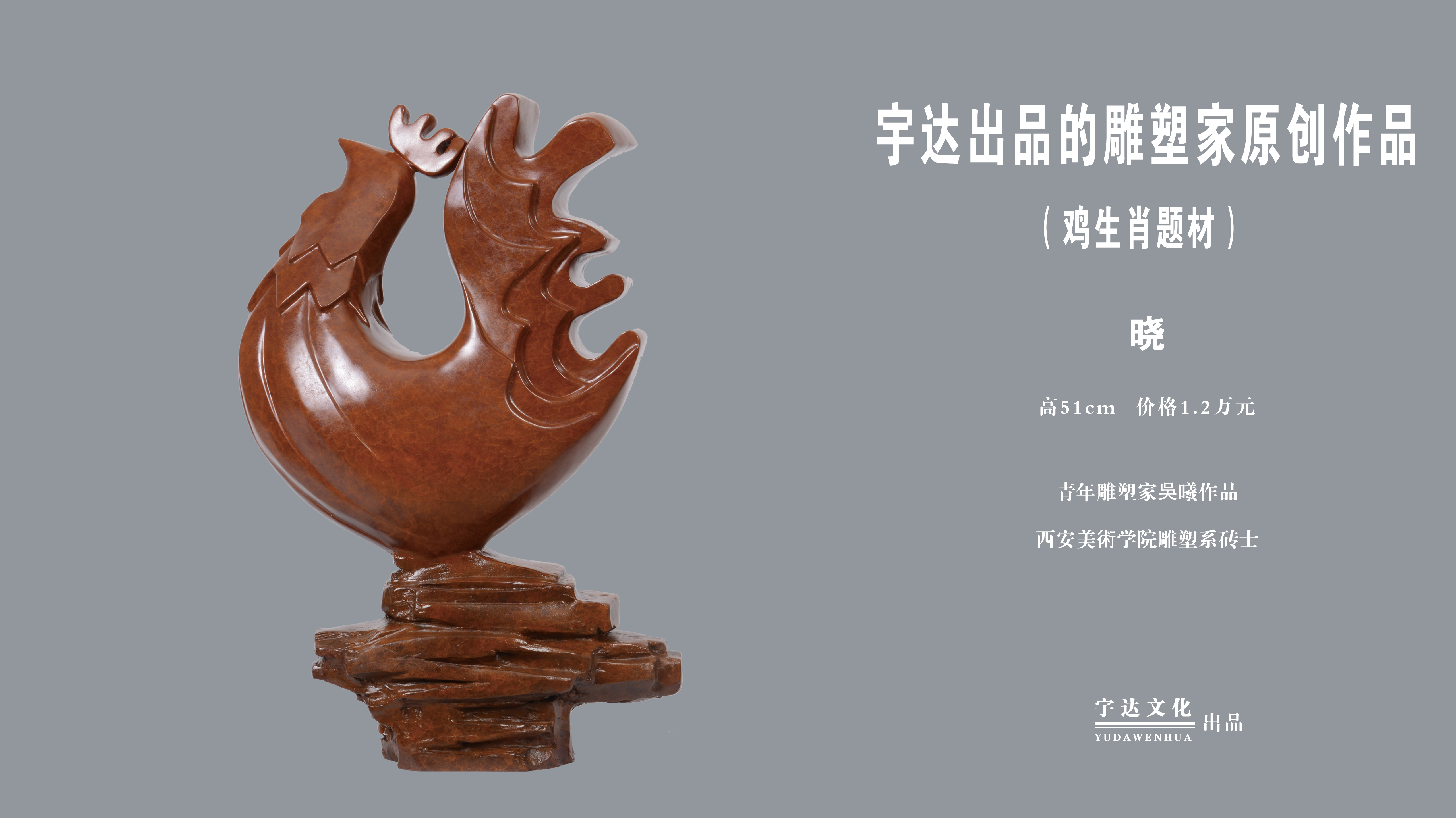 宇达青铜全铜十二生肖 鸡摆件《晓》青年雕塑家吴曦作品 高51cm