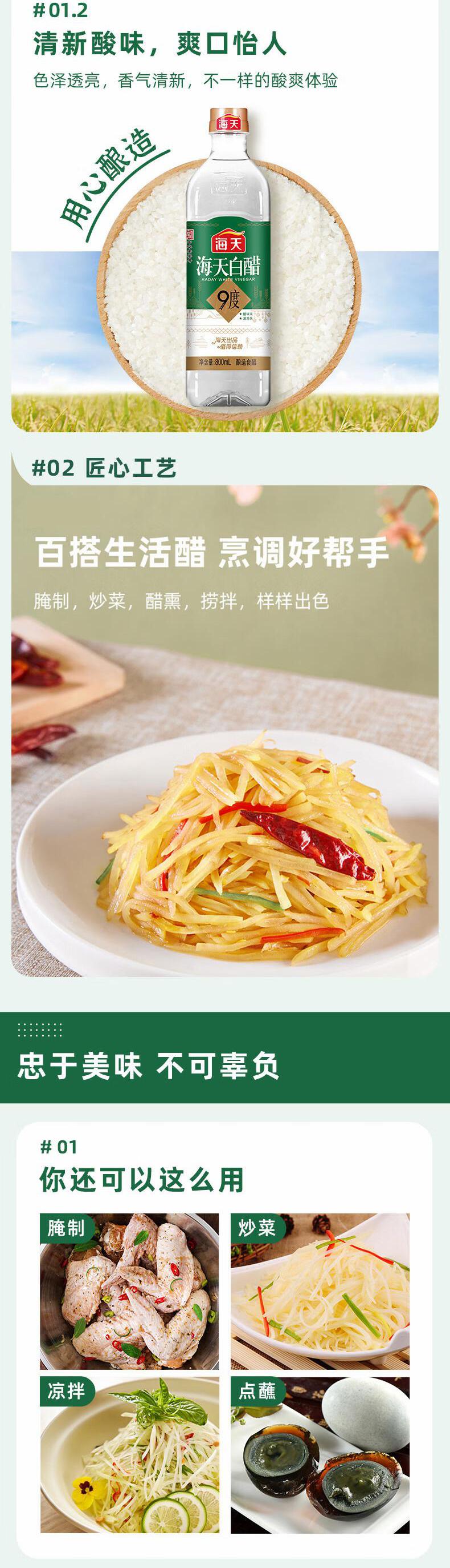 海天 白醋9度800mL*3瓶陈醋新鲜健康美味 KJDF-20230807-0004