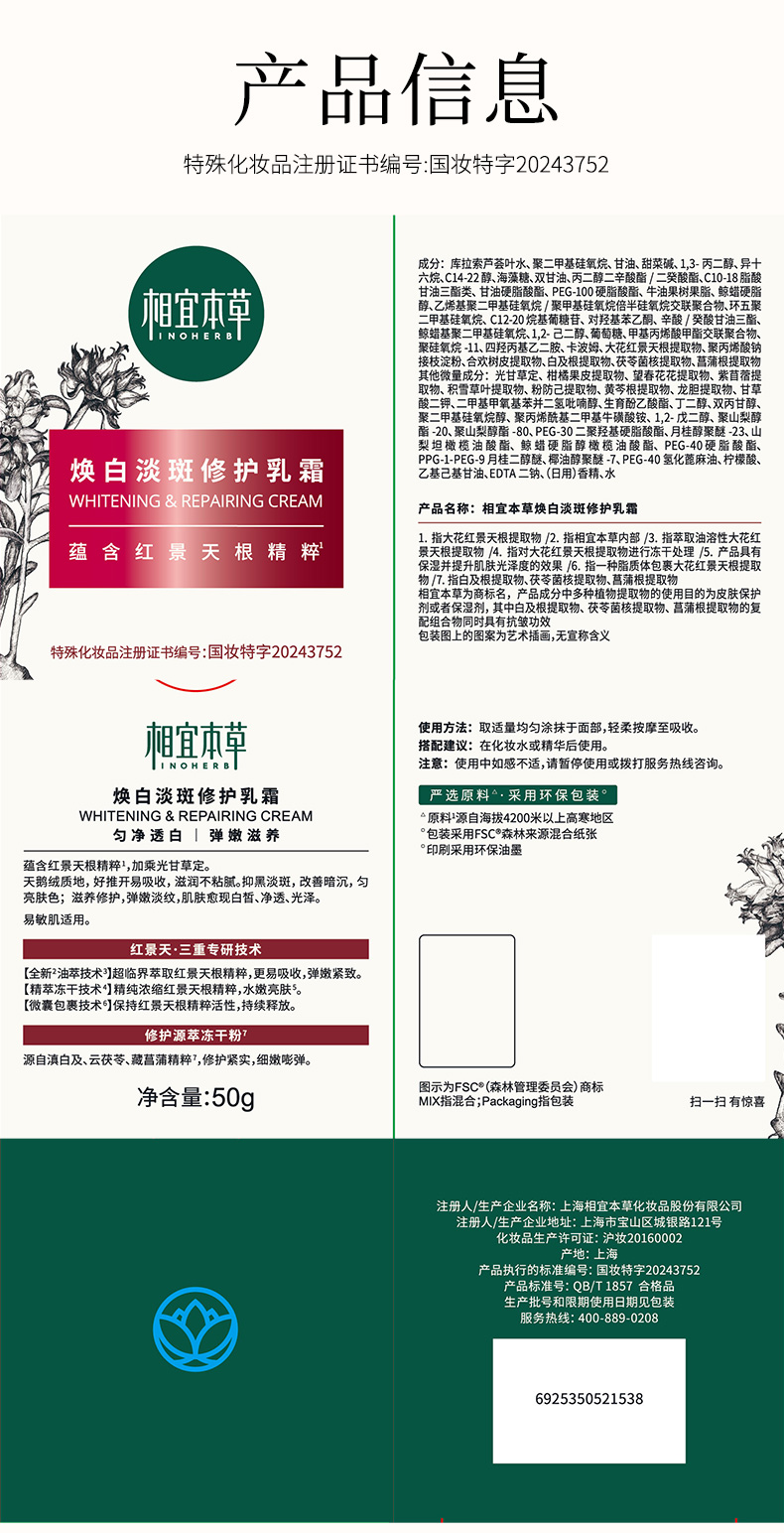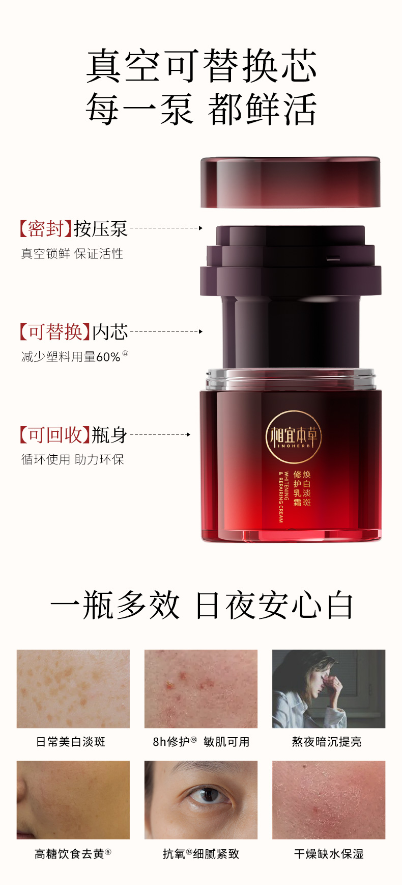 【送替换芯】相宜本草相宜本草焕白淡斑修护乳霜*50g 全网爆款氧白霜 持证淡斑美白不返黑