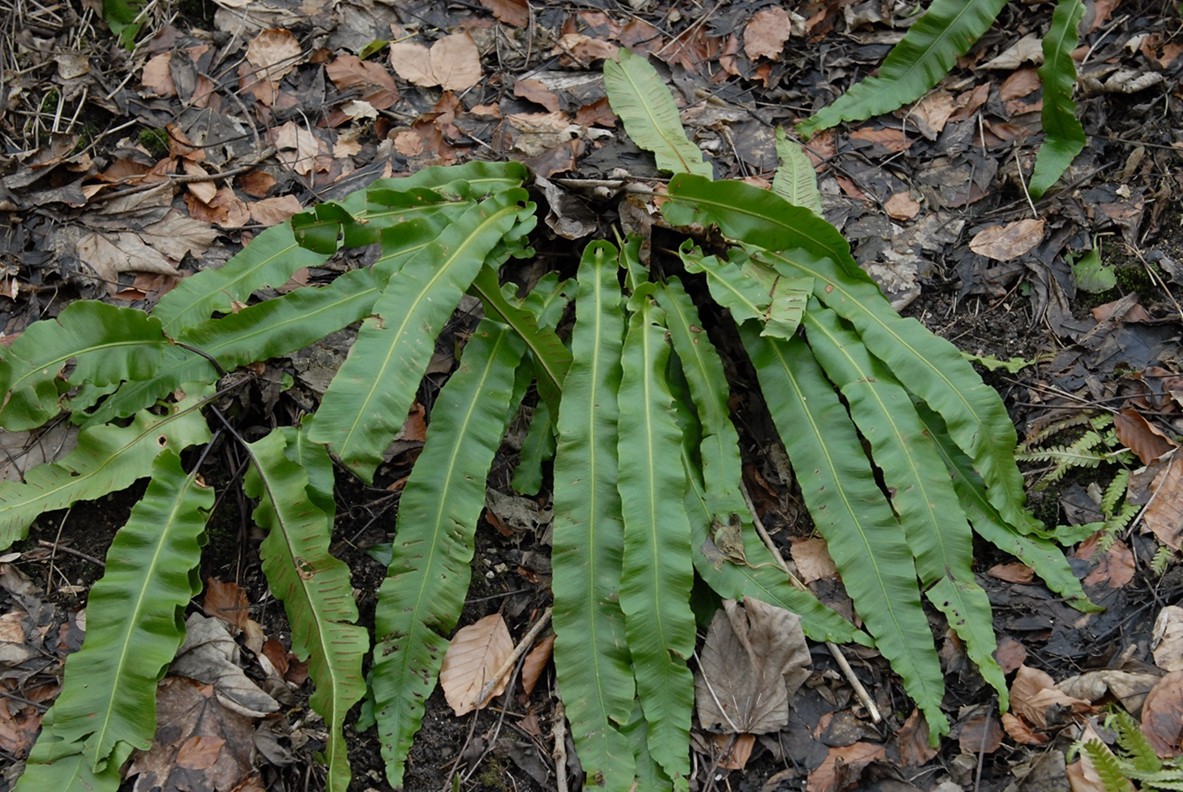 沿怀特兄弟的之字形小道上垂林时,可以看对开蕨Asplenium scolopendrium, Hart’s Tongue Fern
