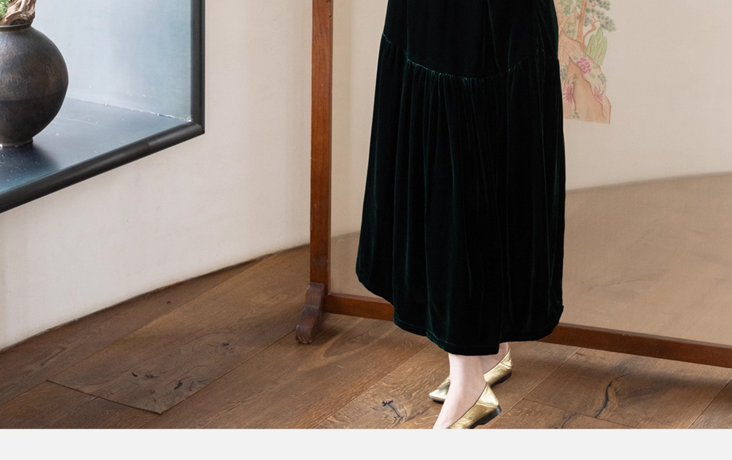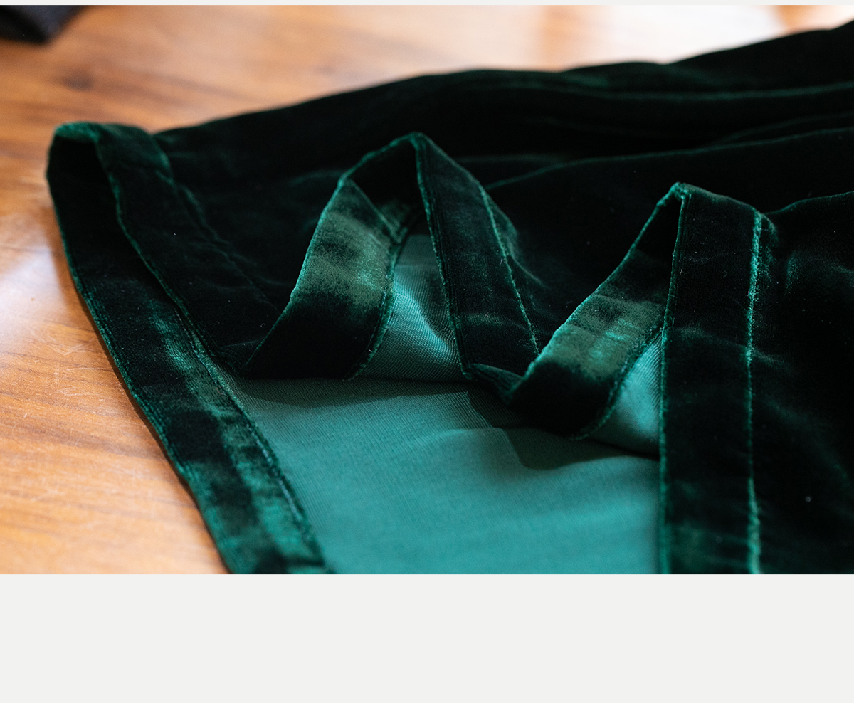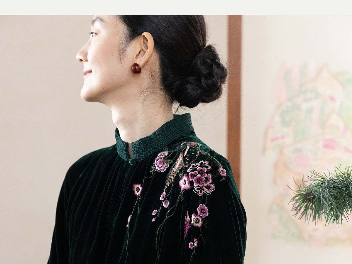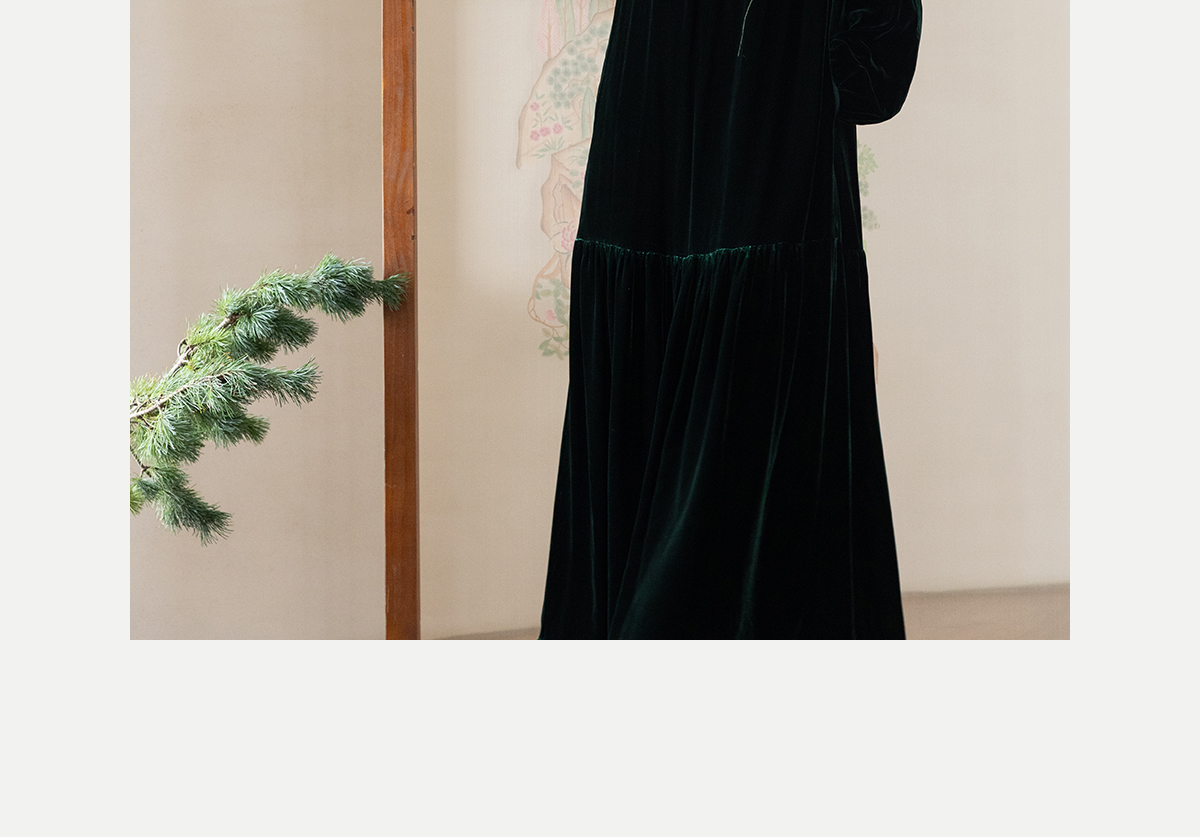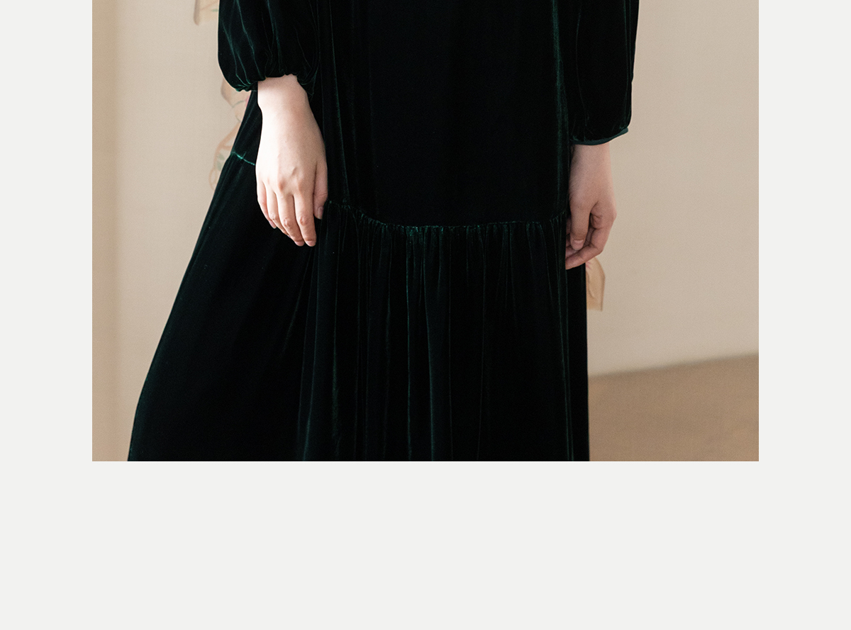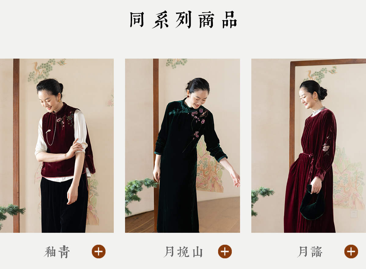 牧衣游原创 丝绒手工刺绣连衣裙女新款宽松绿色东方气质长裙 洛泱
