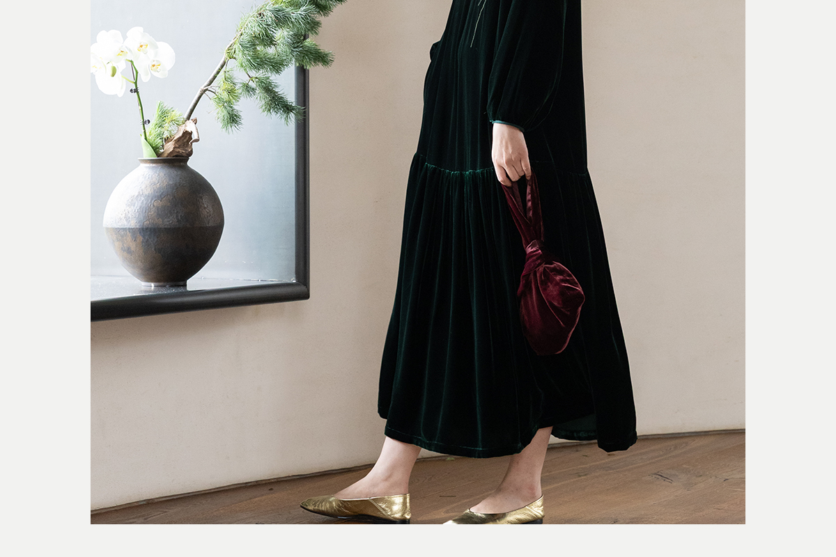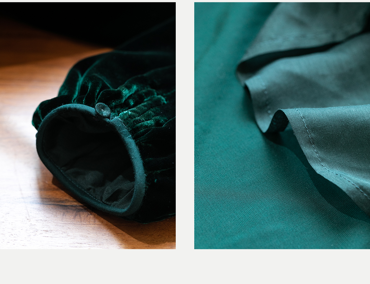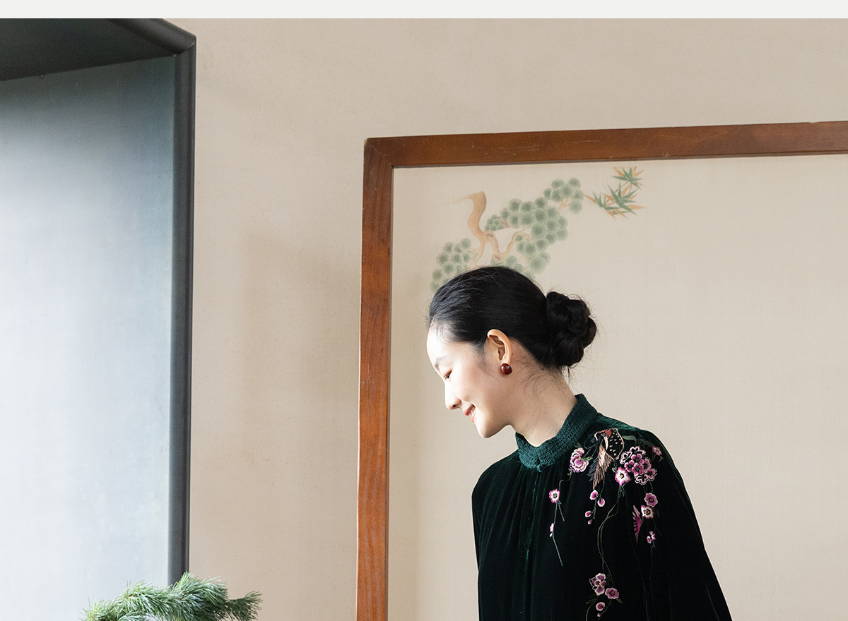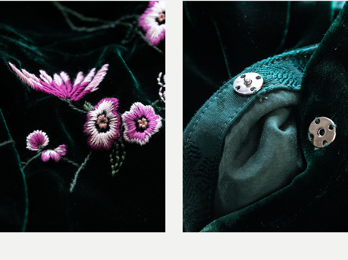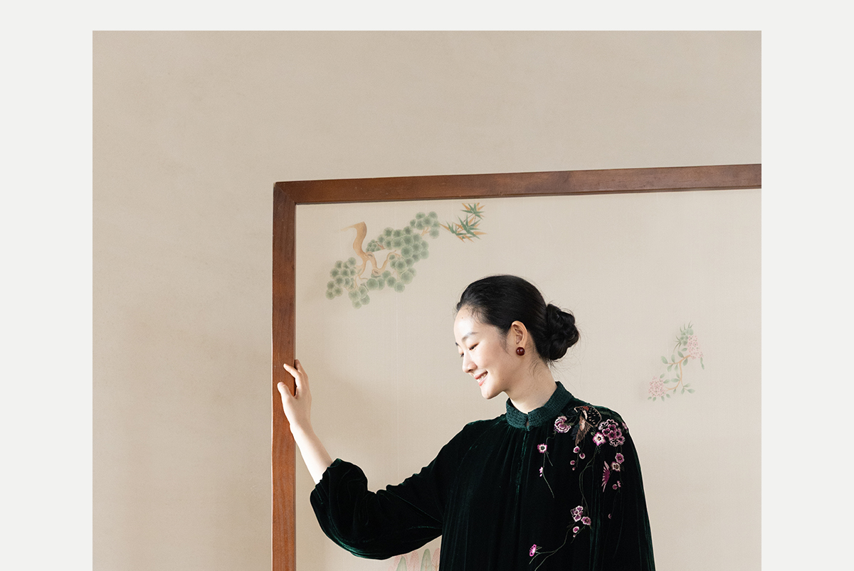 牧衣游原创 丝绒手工刺绣连衣裙女新款宽松绿色东方气质长裙 洛泱