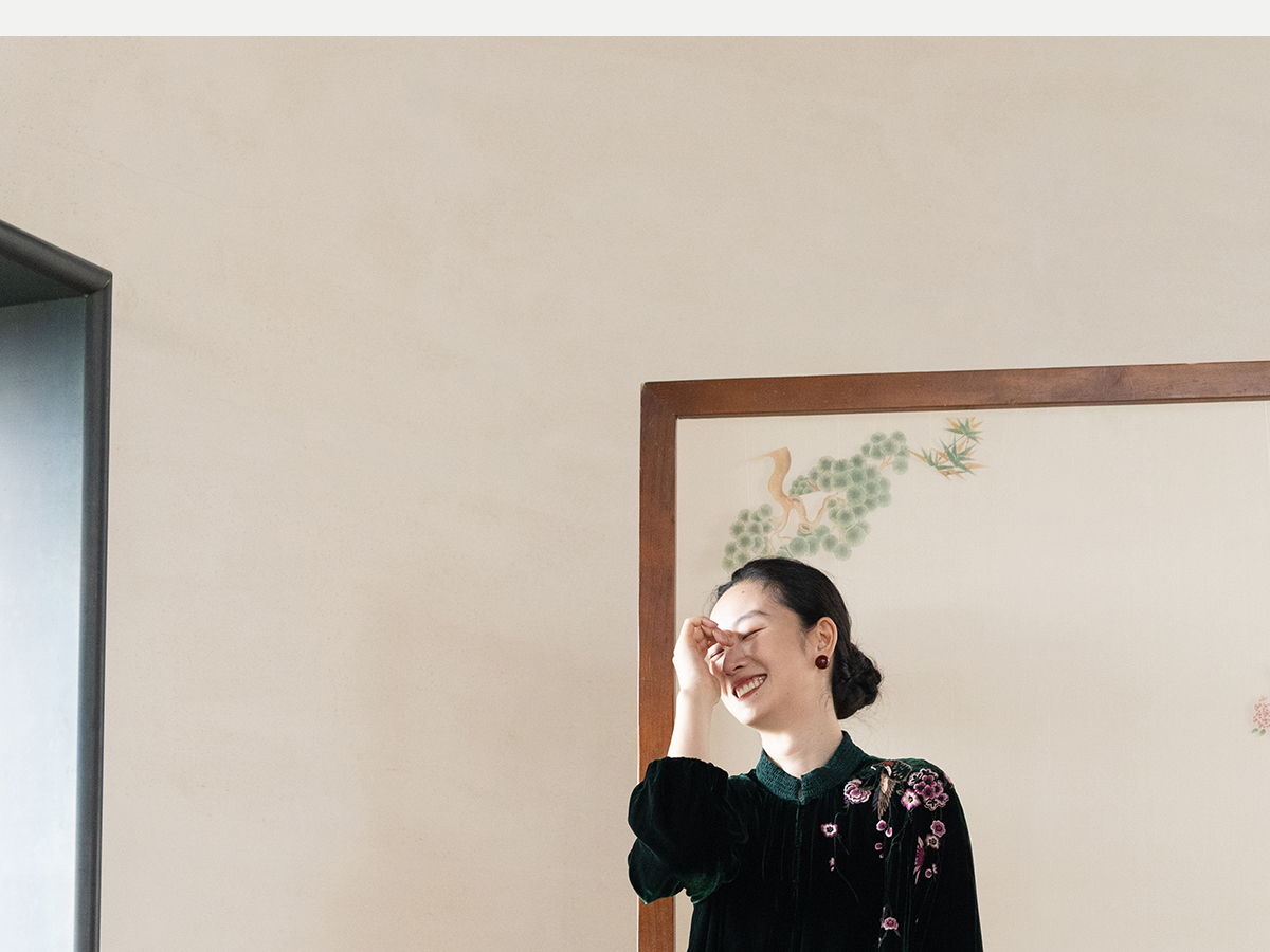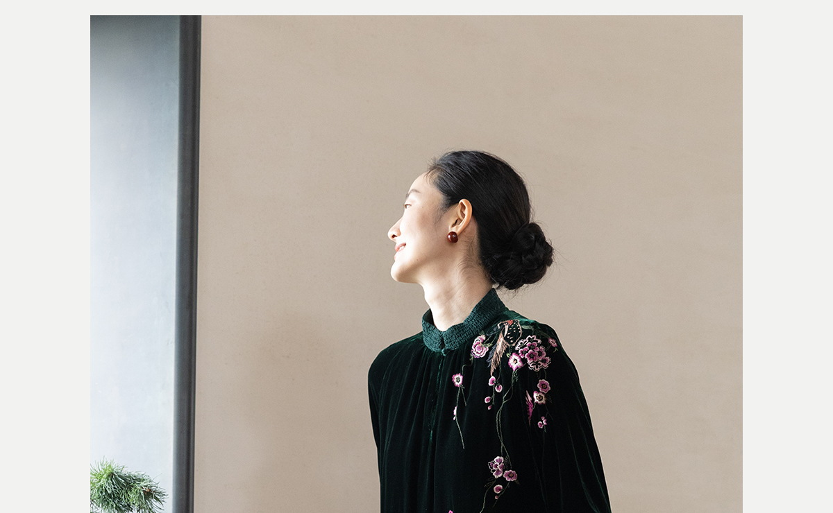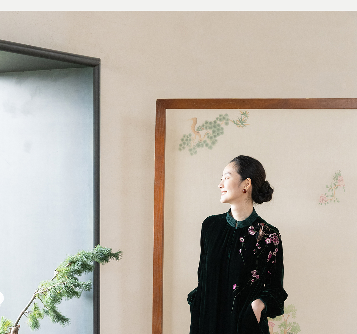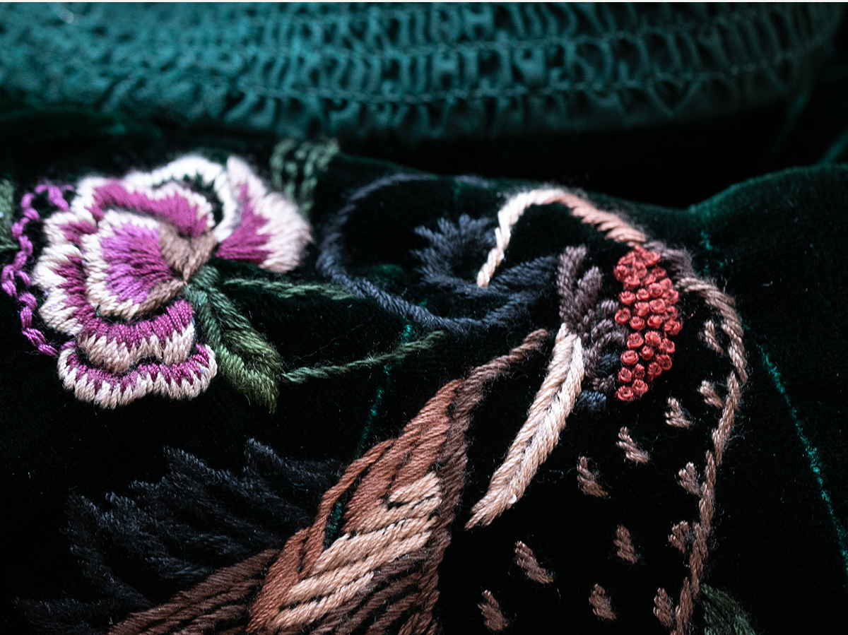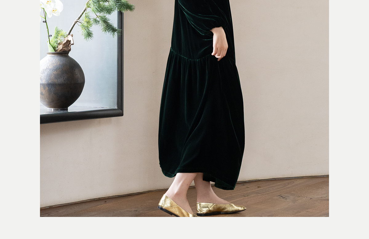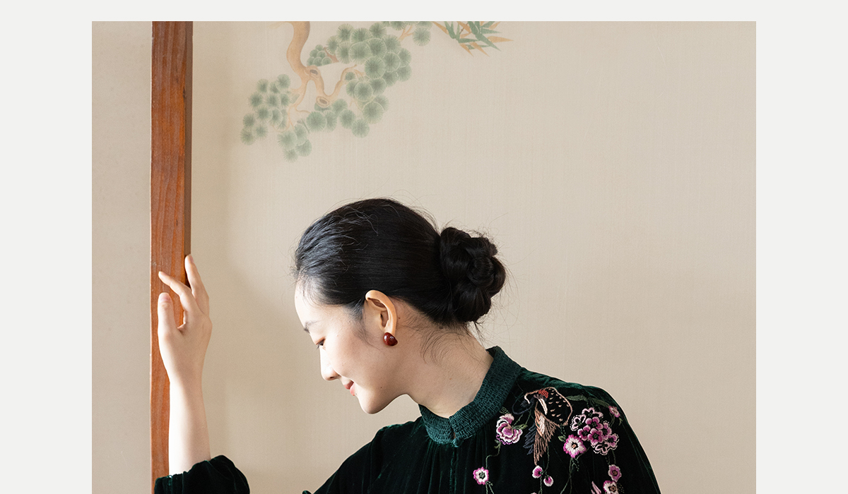 牧衣游原创 丝绒手工刺绣连衣裙女新款宽松绿色东方气质长裙 洛泱